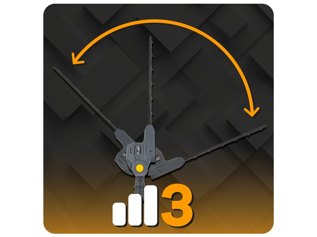 Rozsah nastavenia umožňuje bezpečné a efektívne rezanie aj v ťažko prístupných oblastiach, čím sa zvyšuje ergonómia.