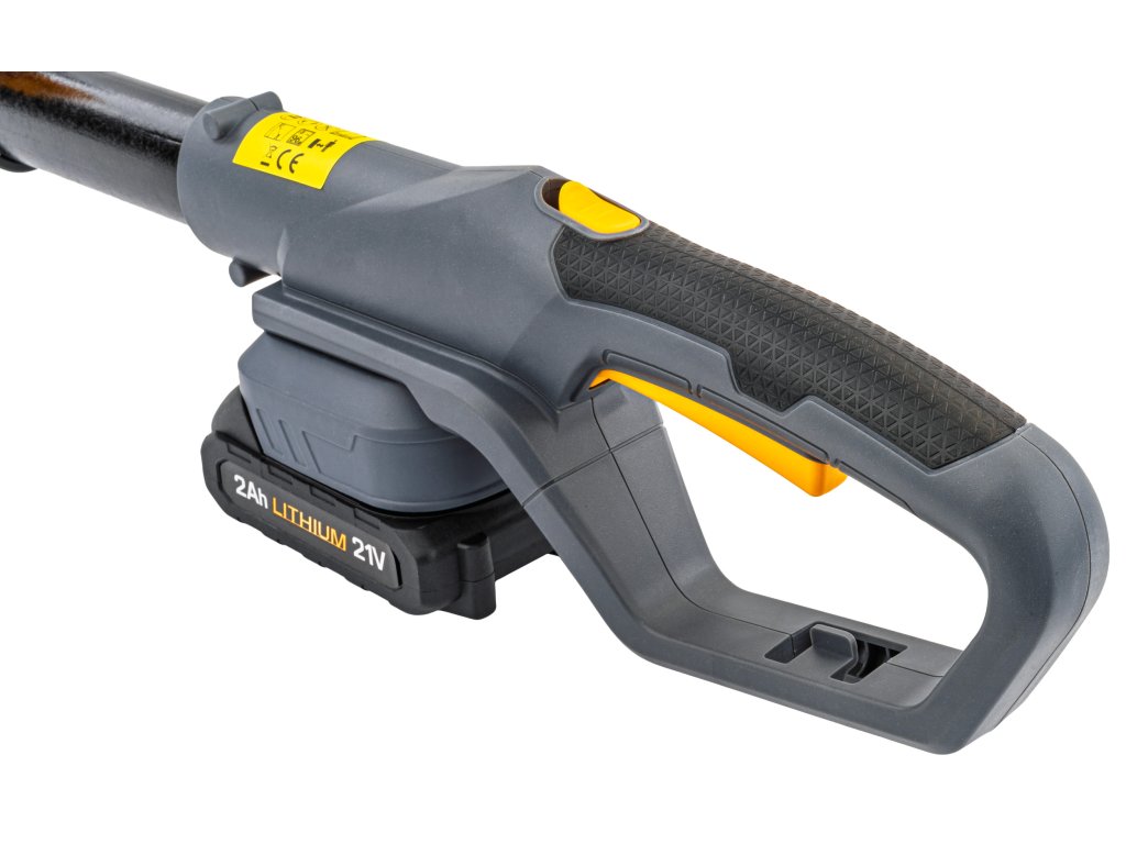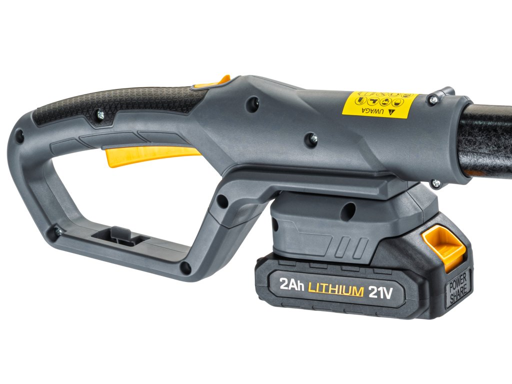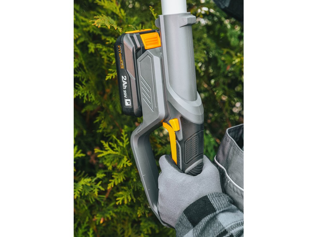 Výkonný elektromotor poháňaný 20 V, 2 Ah batériou umožňuje bez námahy strihať konáre s priemerom až 16 mm, čo zaručuje mobilitu a nezávislosť od zdrojov energie.