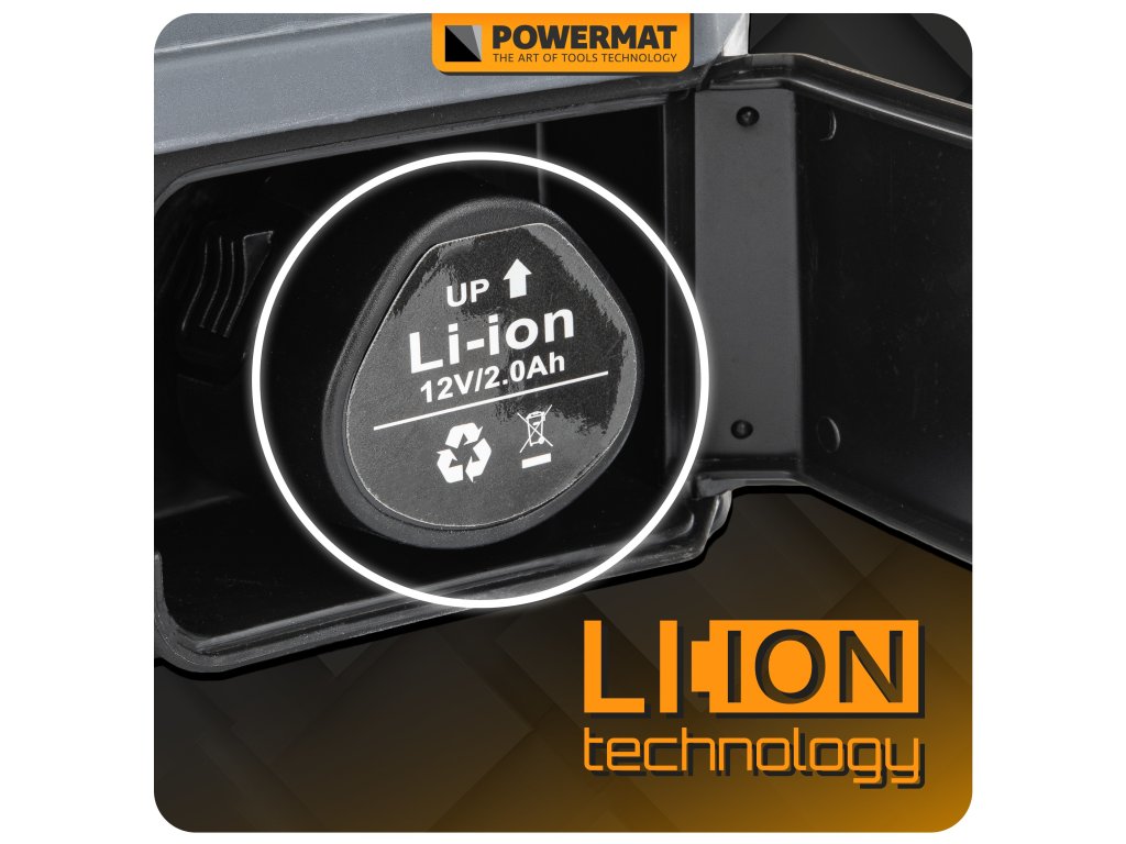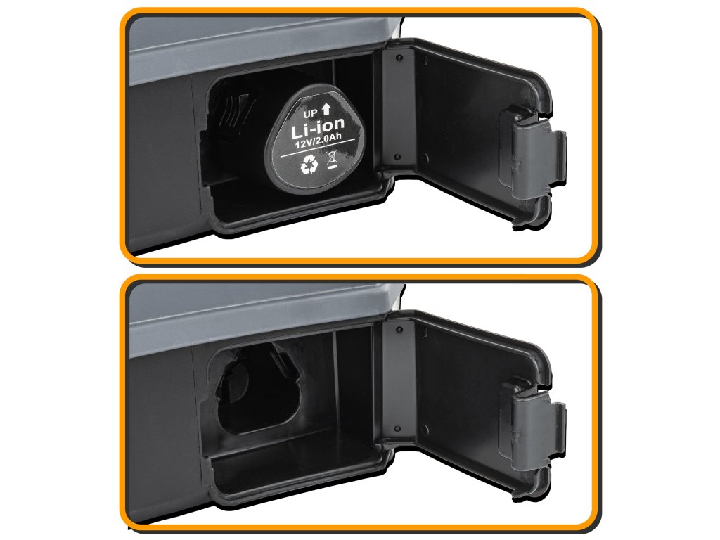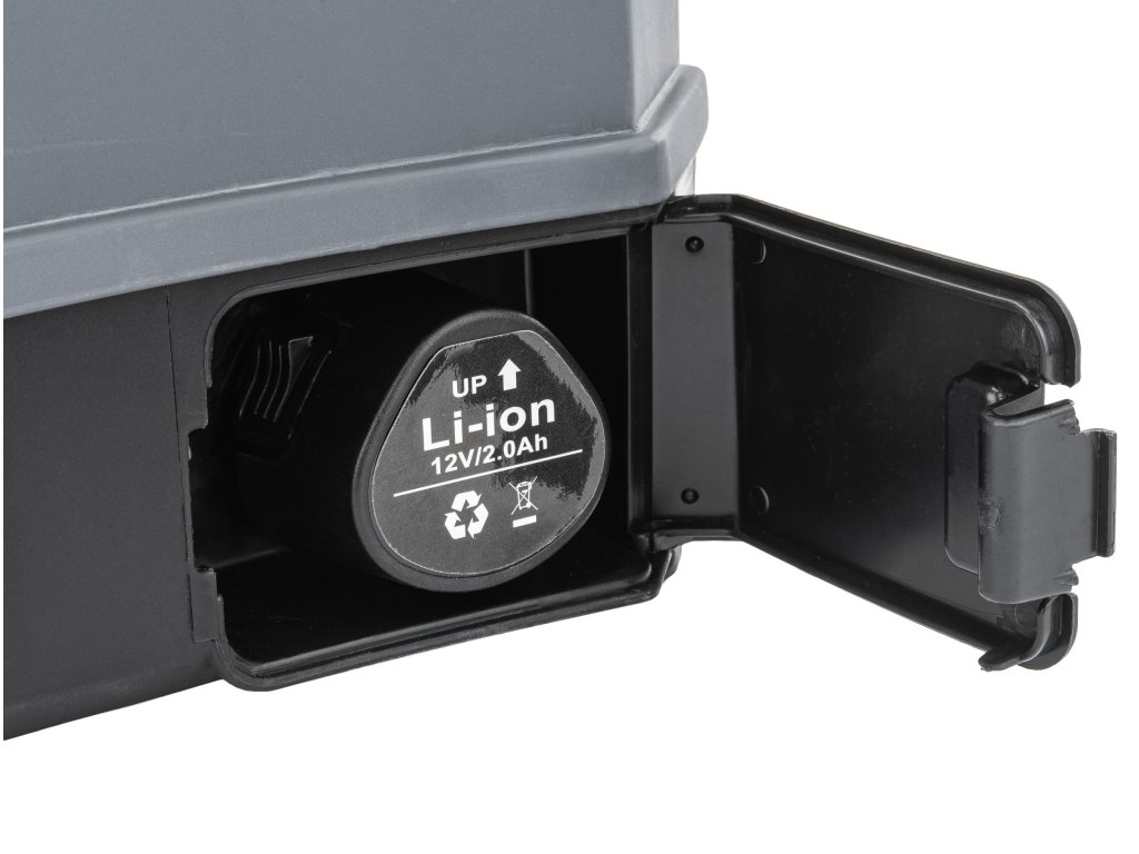Postrekovač je vybavený 12 V lítium-iónovou batériou s kapacitou 2 Ah.