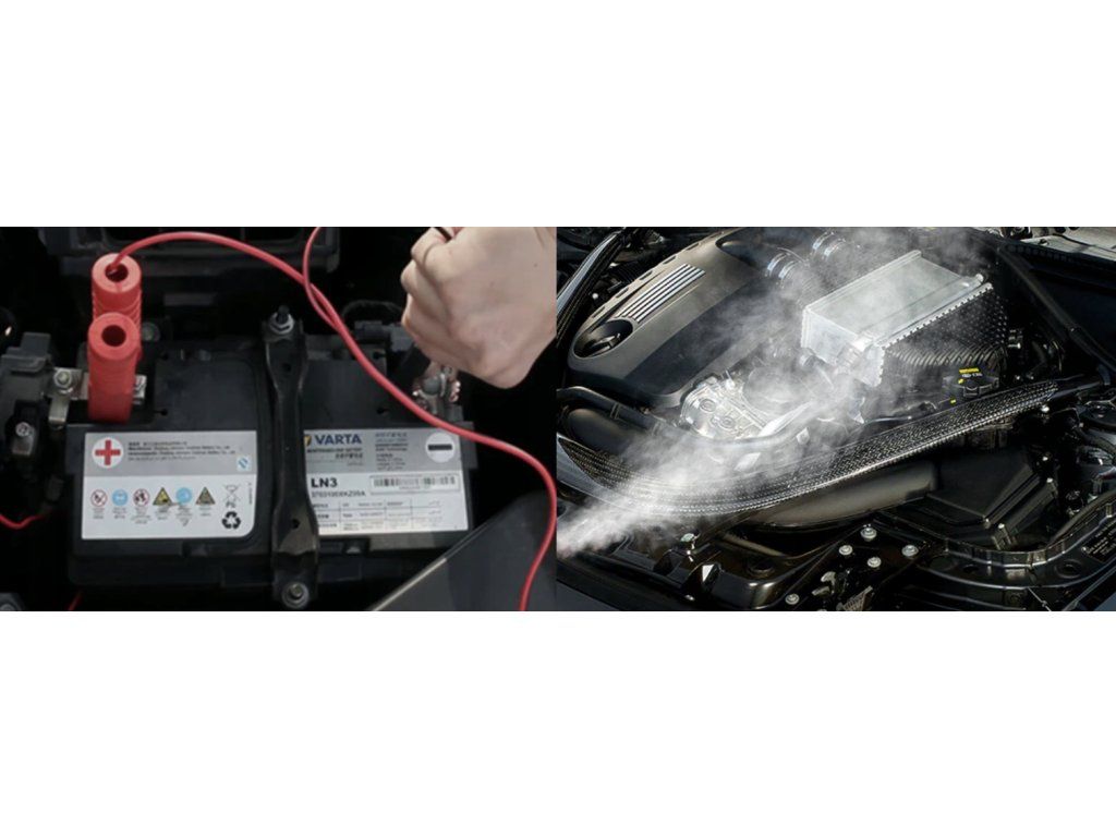 2. Otvoríte kryt motora a položíte generátor na kapotu motora.