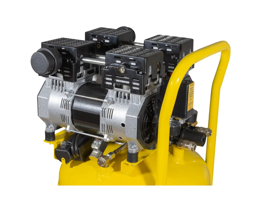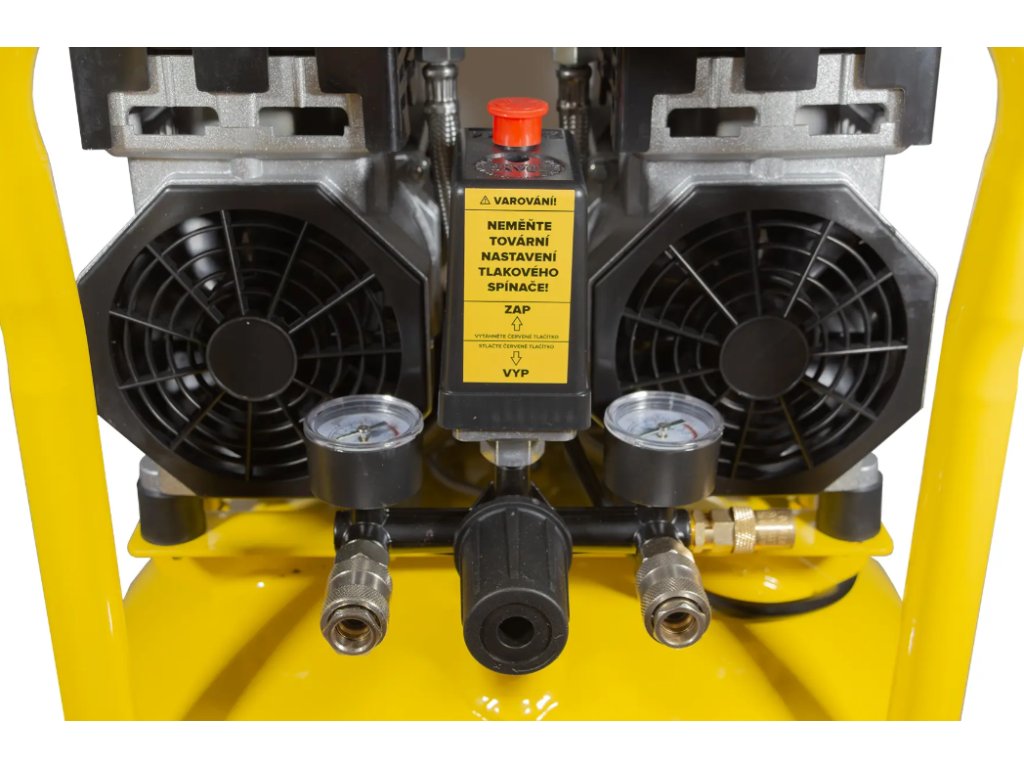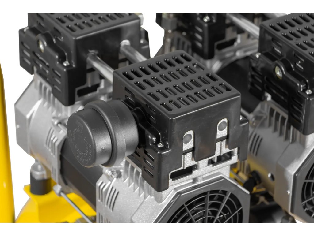 - Štvorpiestová jednotka s výtlakom 295 l/min – stabilná dodávka vzduchu aj pri dlhodobom chode, zvládne prevádzku viacerých pneumatických nástrojov súčasne.