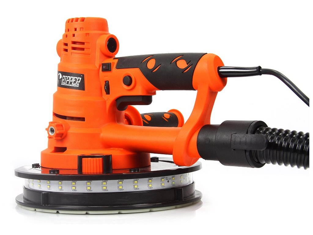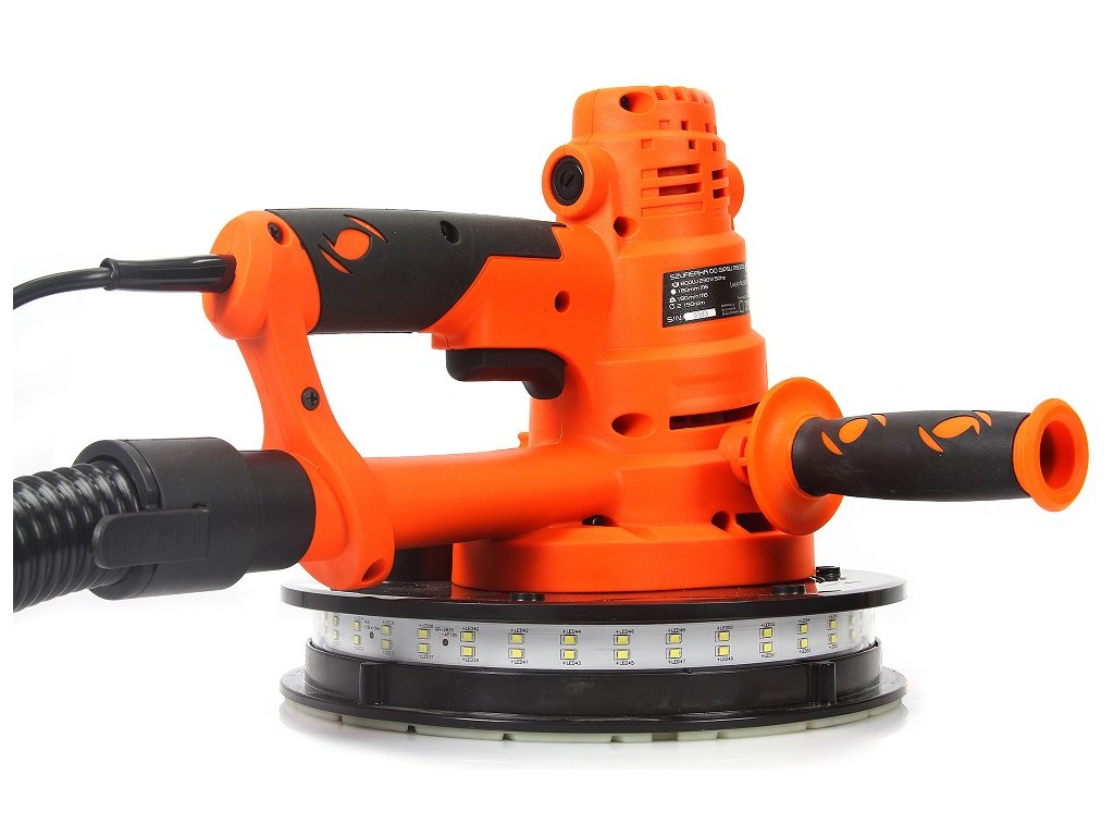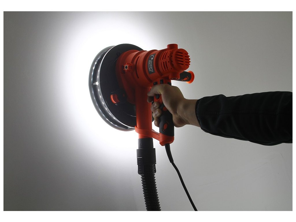 Praktická brúska sadrových omietok vybavená LED osvetlením do tmavých miest a rohov.