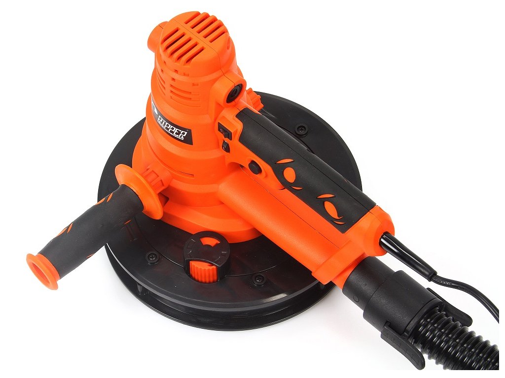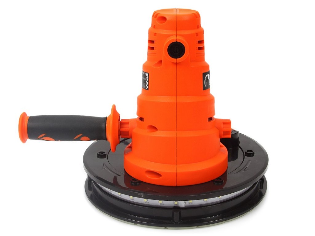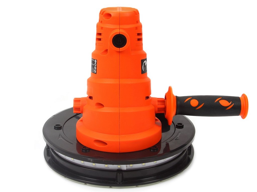 Ručná excentrická brúska na sadrové omietky s priemerom kotúča 180 mm uľahčuje brúsenie sadrokartónových stien a stropov a rohov.