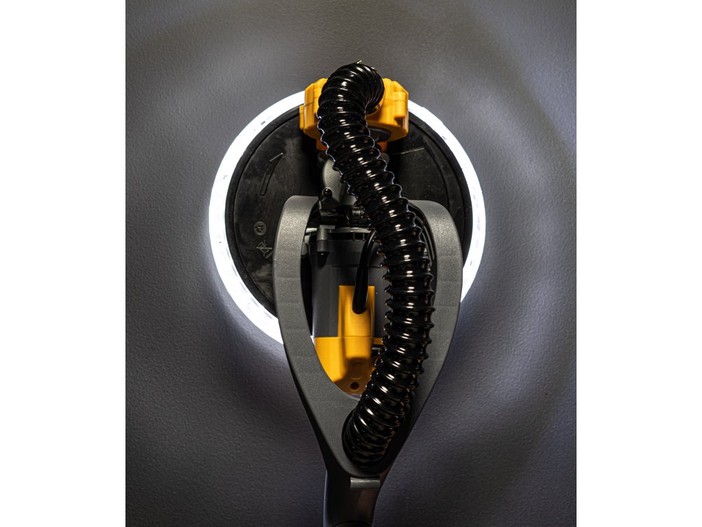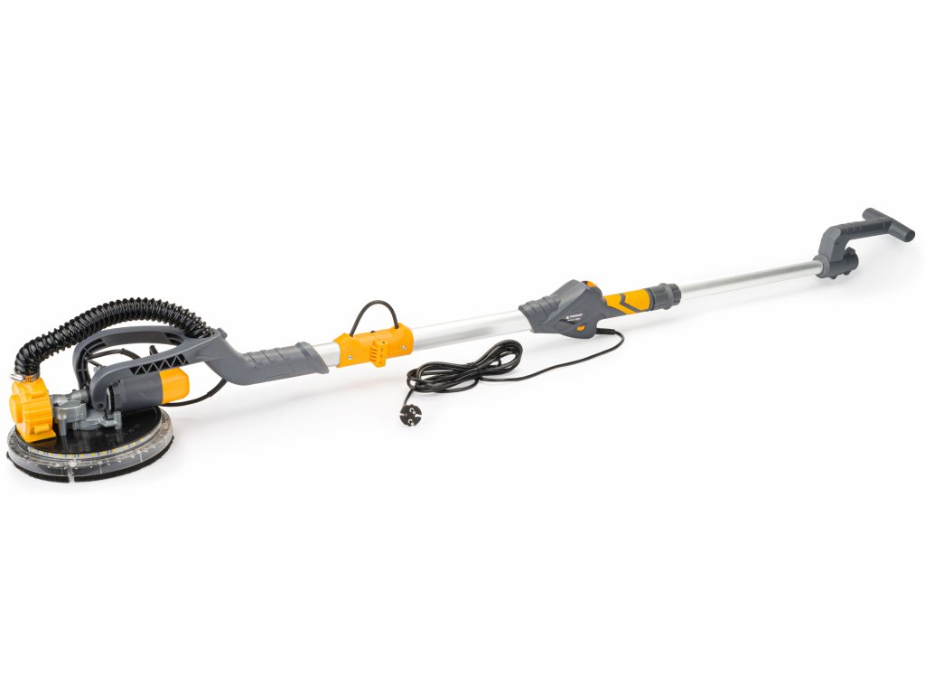 Bezprašná brúska na sadrové omietky s výkonom 1500 W a priemerom kotúča 225 mm uľahčuje brúsenie sadrokartónových stien a stropov.