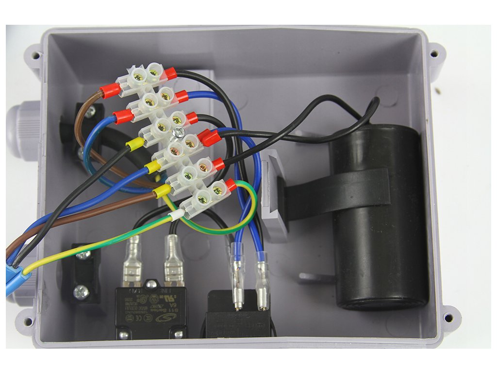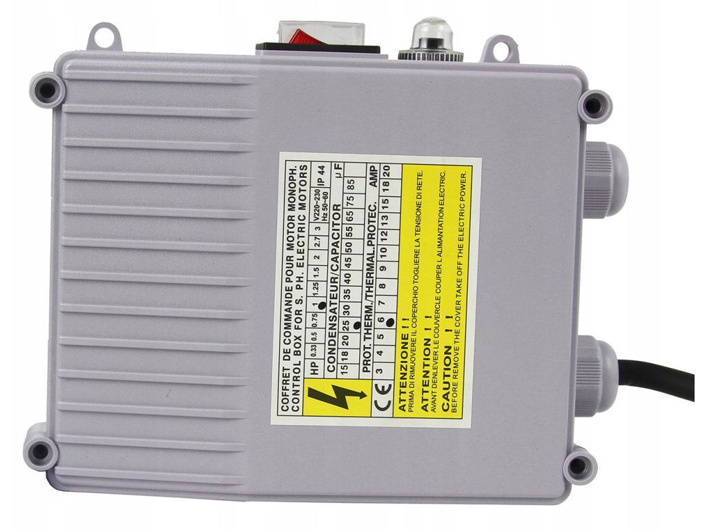 Ovládacia skrinka vybavená nadprúdovým spínačom zaisťuje jednoduchú obsluhu . Zabraňuje možnému poškodeniu zariadenia pri napäťových rázoch. Dlhá 35 metrová napájacia šnúra zaistí pohodlnú inštaláciu prístroja bez nutnosti zdĺhavého strihania a pod.(je lepšie skracovať ako predlžovať :))