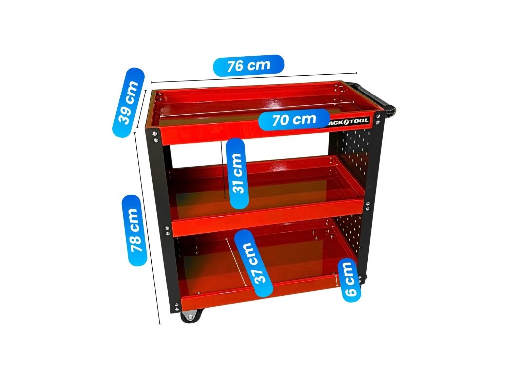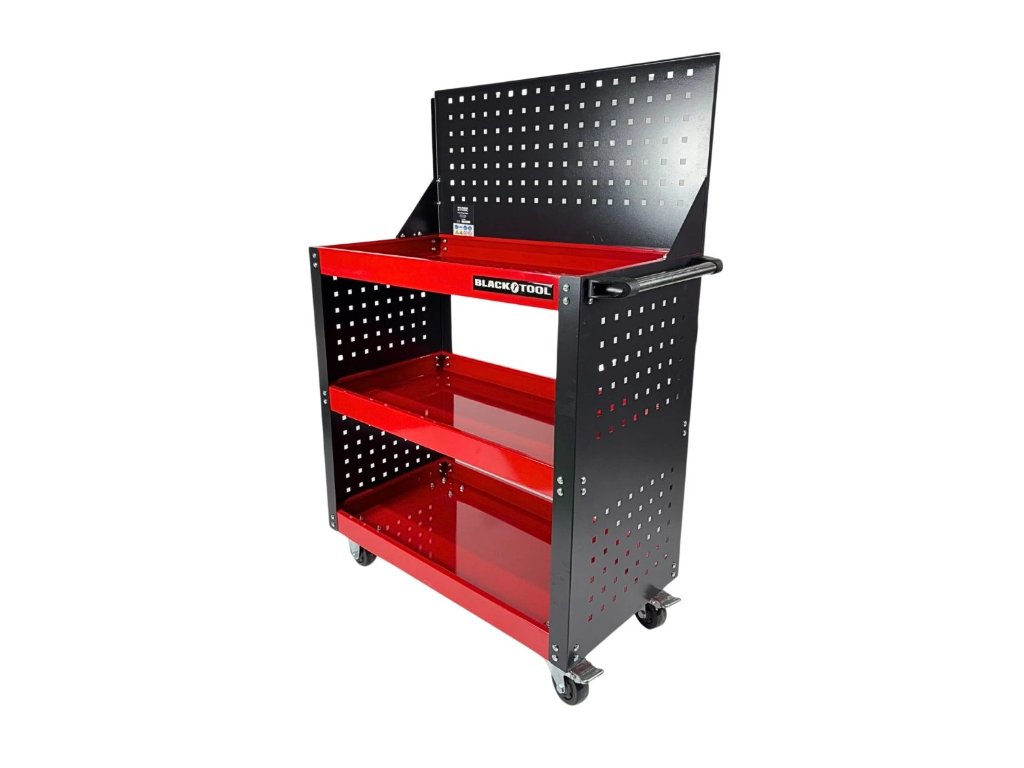 - Vozík je vybavený pevným bočným madlom, ktoré uľahčuje manipuláciu a presun po dielni.
