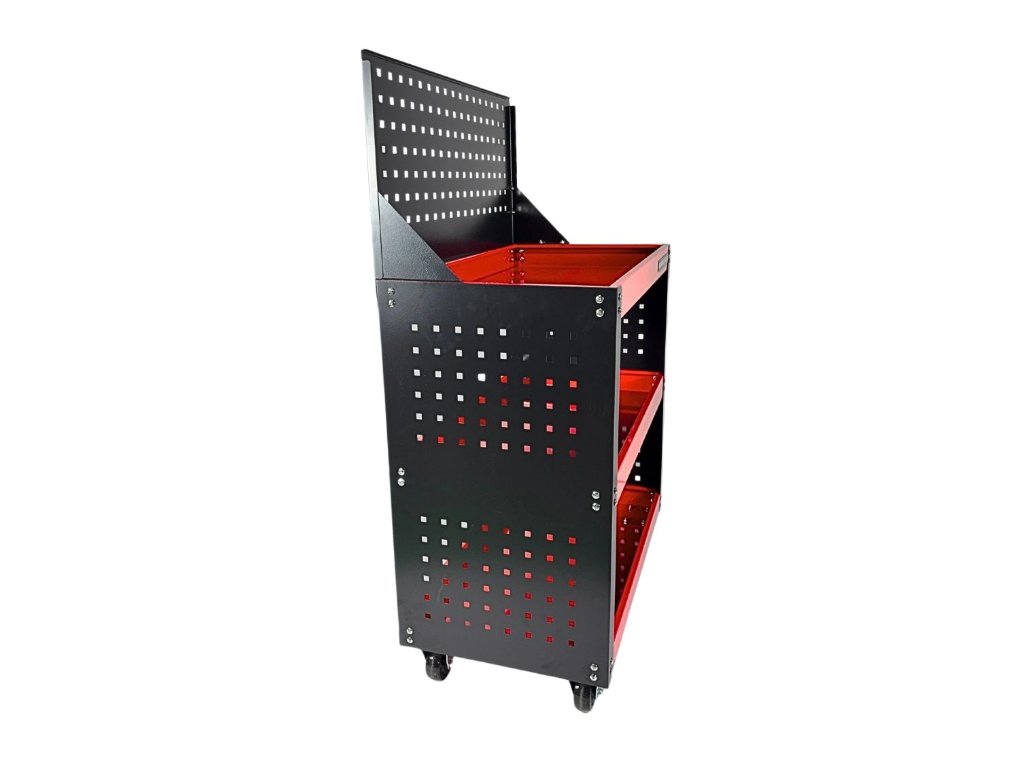 - Vďaka kolieskam sa vozík jednoducho presúva po dielni, garáži alebo servise.
