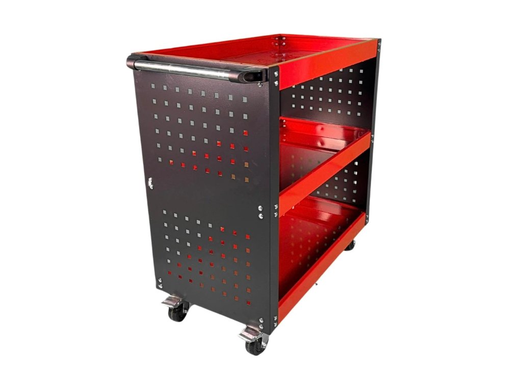 - Vozík je vybavený pevným bočným madlom, ktoré uľahčuje manipuláciu a presun po dielni.