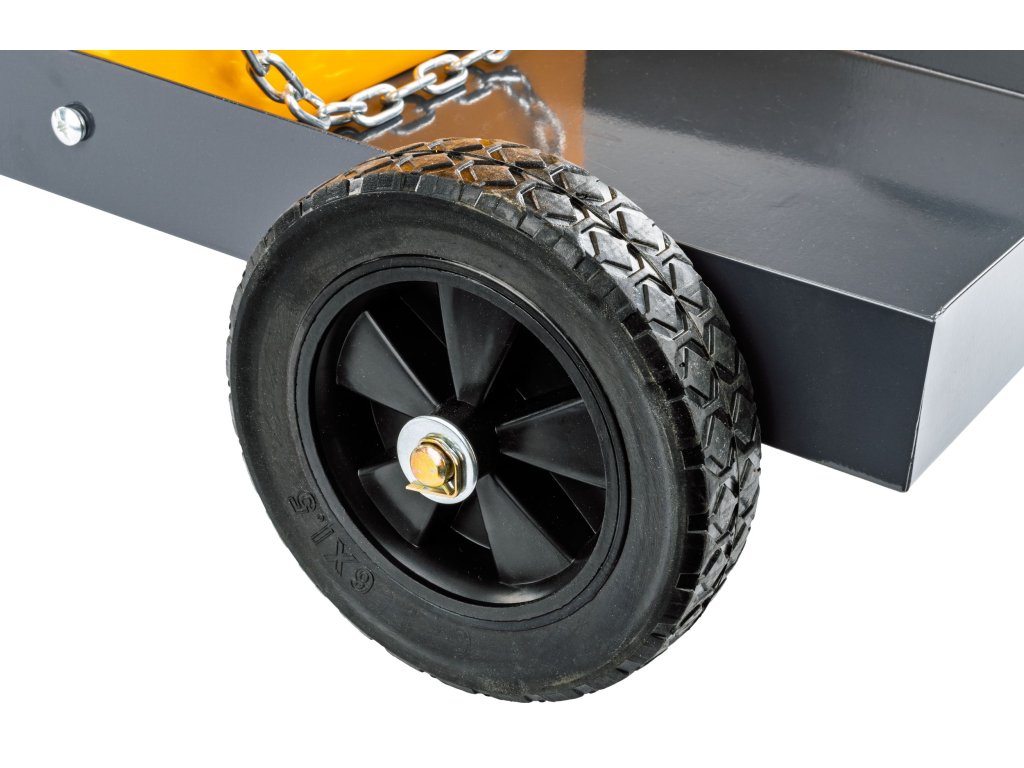 Zvárací vozík je vybavený kvalitnými kolieskami, ktoré umožňujú ľahký a plynulý pohyb zariadenia v rôznych podmienkach dielne. Väčšie zadné kolesá zabezpečujú stabilitu a sú užitočné pri preprave vozíka po nerovnom povrchu, zatiaľ čo menšie predné kolesá, ktoré sú často otočné, zaručujú presné manévrovanie v úzkych a ťažko prístupných priestoroch. Vďaka tomu je vozík ideálny na použitie vo veľkých výrobných halách aj v malých dielňach.