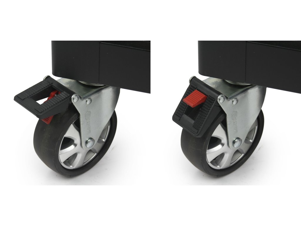 4 kolieska 125mm pre jednoduché a pohodlné premiestňovanie skrinky, z toho dva sú s brzdením