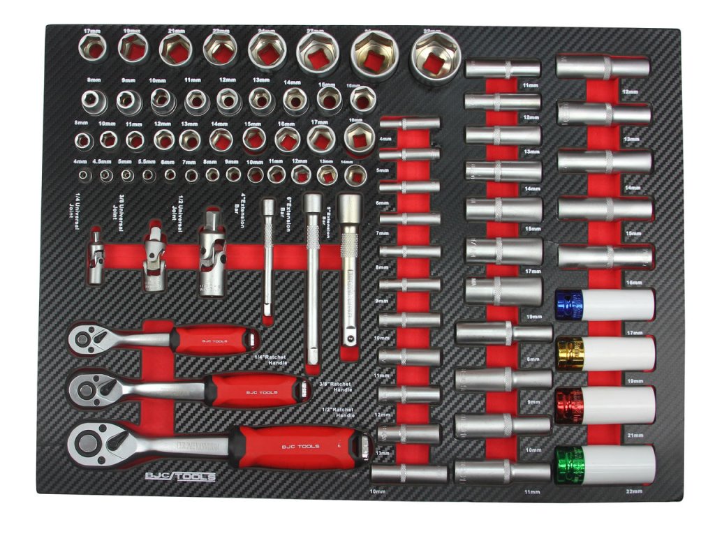 - Nástrčkové kľúče predĺžené 1/2" 13 ks: 8, 9, 10, 11, 12, 13, 14, 15, 16, 17, 19, 21, 22 mm (vrátane krytov