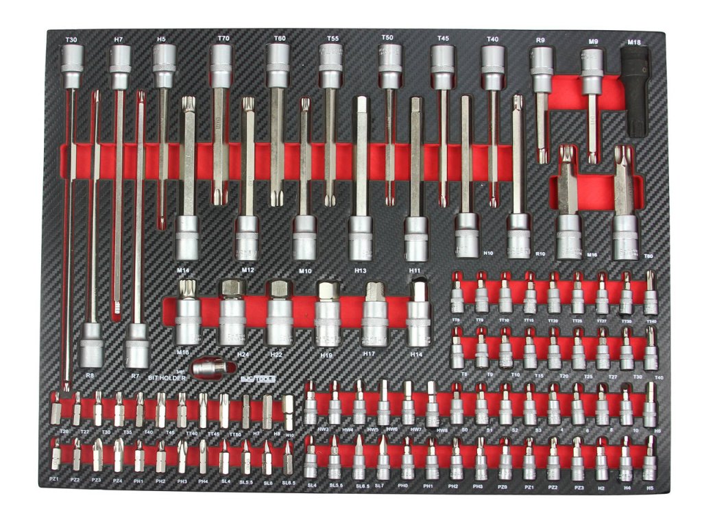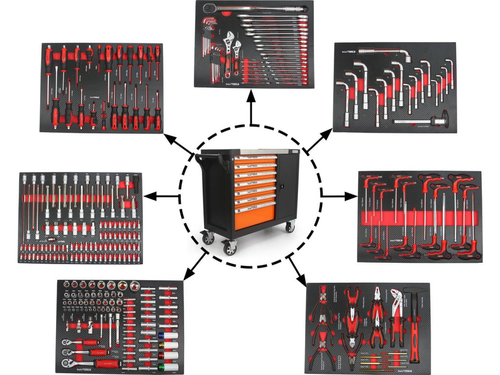 Penové výplne zásuviek, vysoká kvalita náradia, výborný obsah s 298 kusmi náradia!