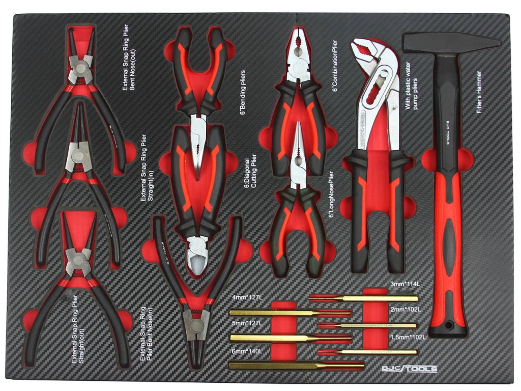 - 9 ks klieští: kombinačky, kliešte na poistné krúžky, štikacie kliešte