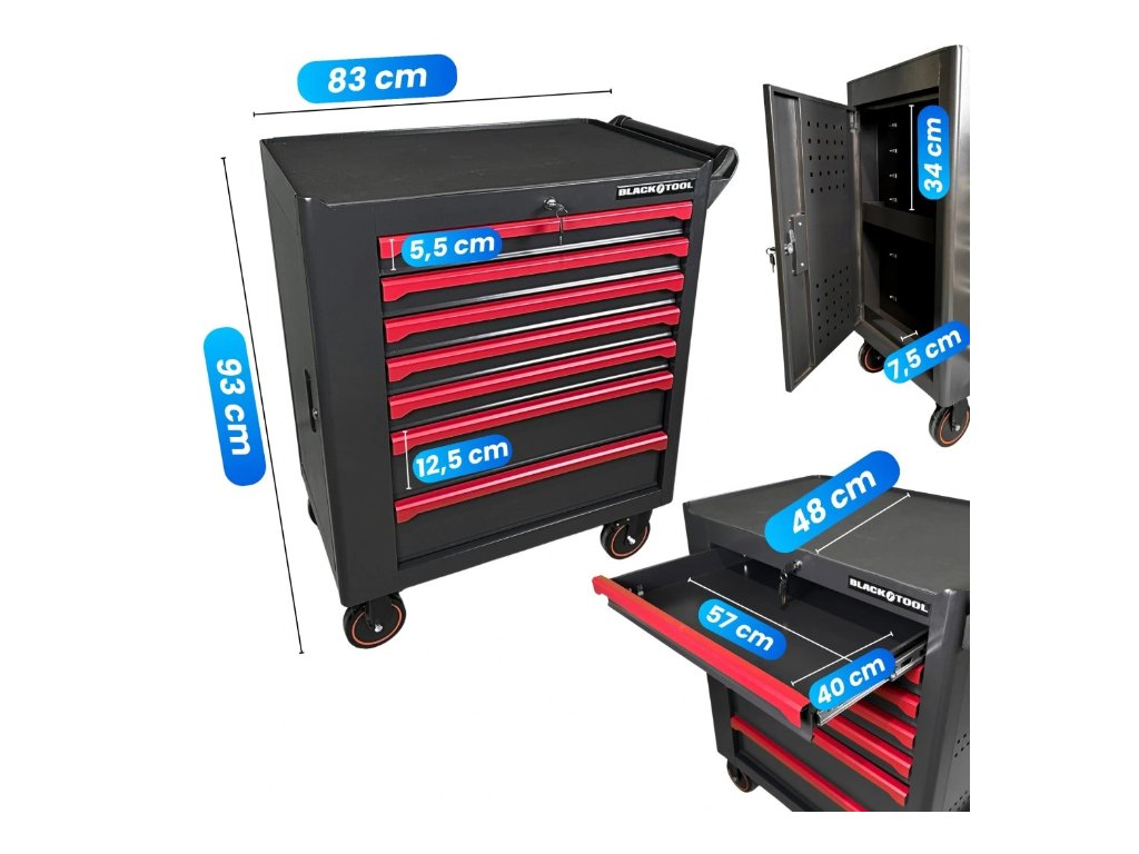 - Celkové rozmery vozíka: 930 x 480 x 830 mm – ideálne pre každú dielňu, servis či garáž.