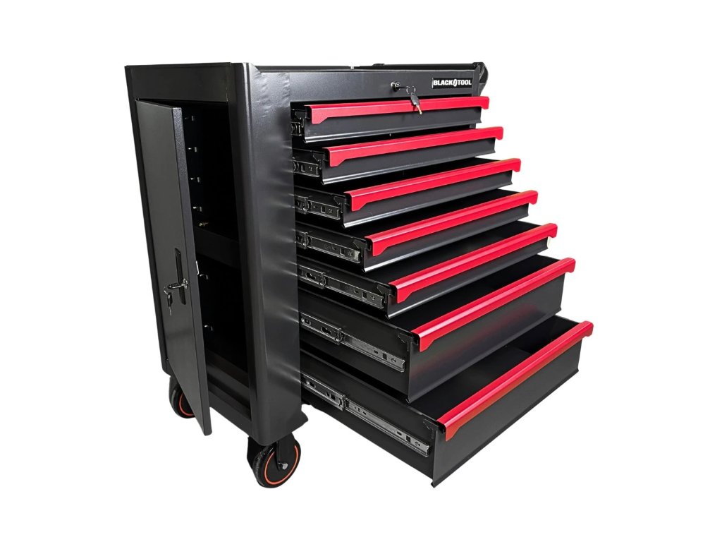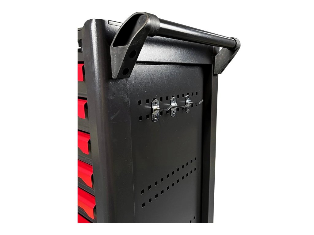 - Obsahuje 7 zásuviek, bočnú skrinku a praktické háčiky na zavesenie náradia.