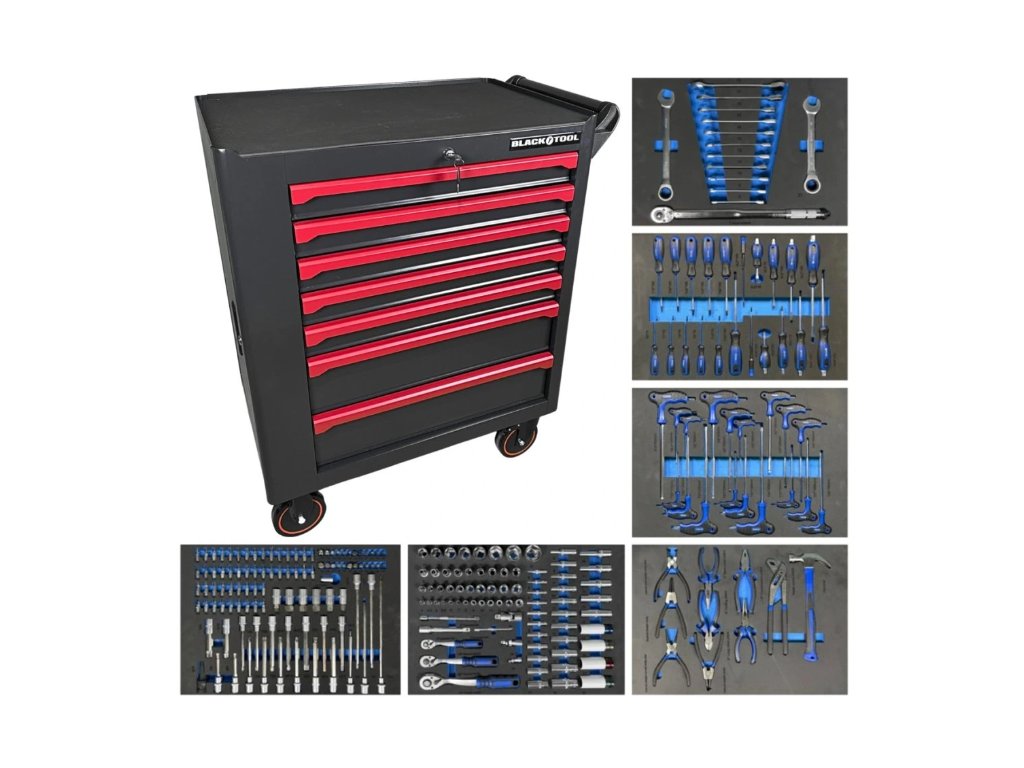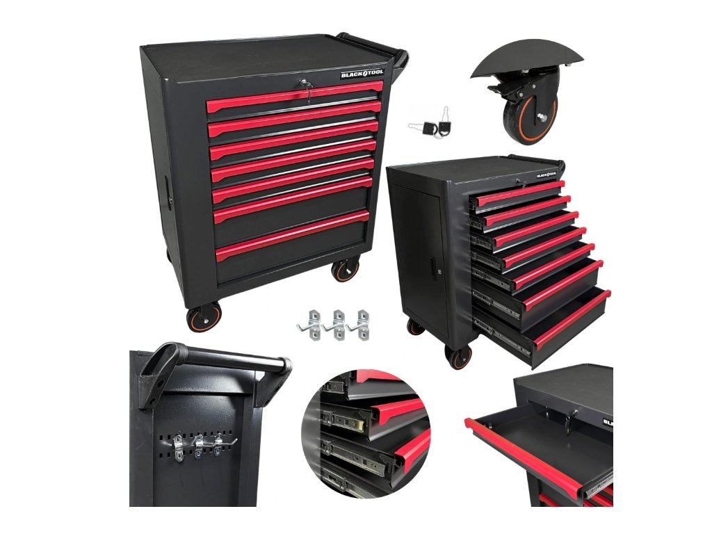 - Obsahuje 7 zásuviek, bočnú skrinku a praktické háčiky na zavesenie náradia.