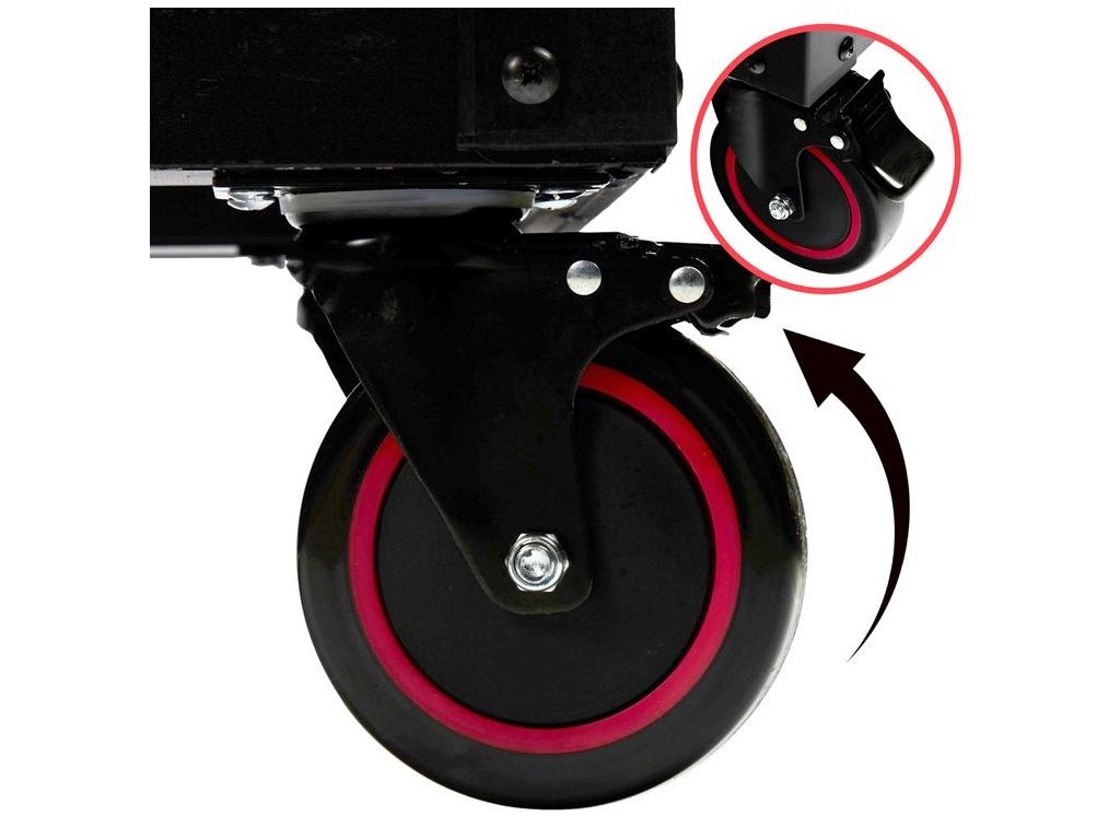 - Veľké ovládateľné kolesá, automatické zaistenie a brzda zaisťujú bezpečnosť pri premiestňovaní skrinky aj na malých svahoch.