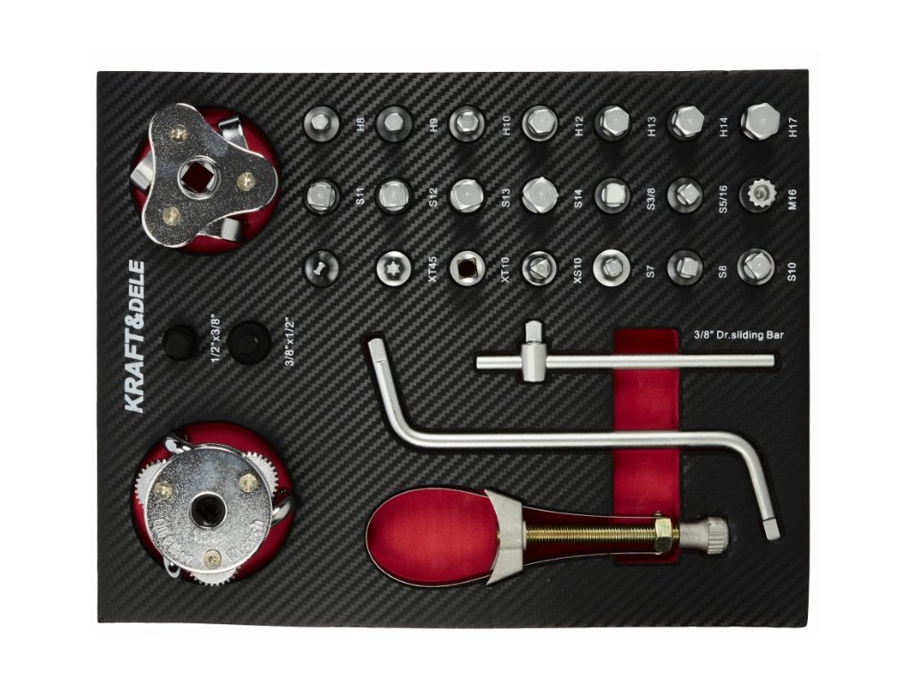 - 17 nástrčných kľúčov 3/8" – 6-7-8-9-10-11-12-13-14-15-16-17-18-19-20-21-22mm