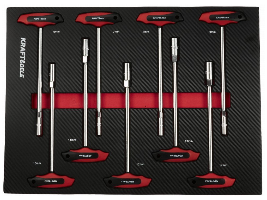 - 9 dlhých nástrčných kľúčov 1/2" – 10-11-13-14-15-17-19-21-22 mm