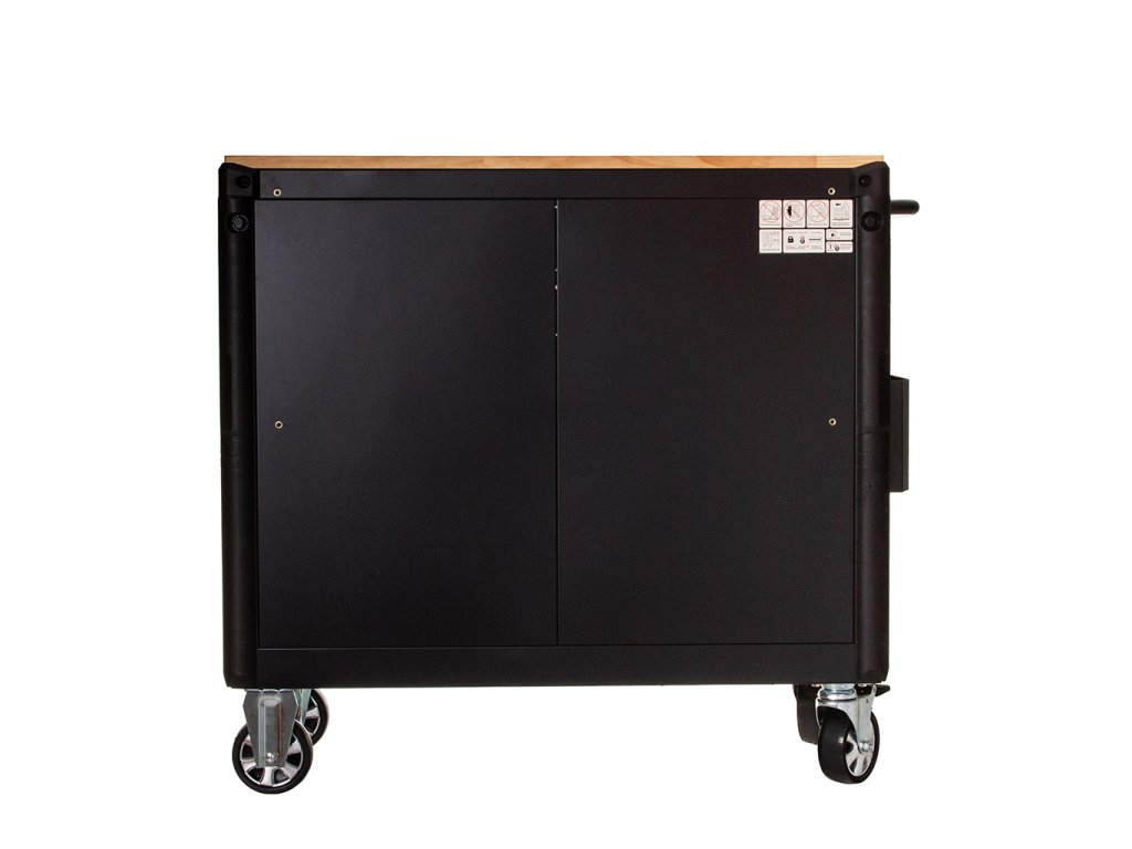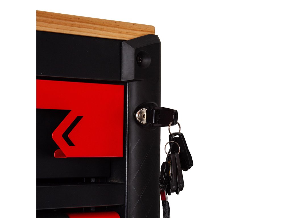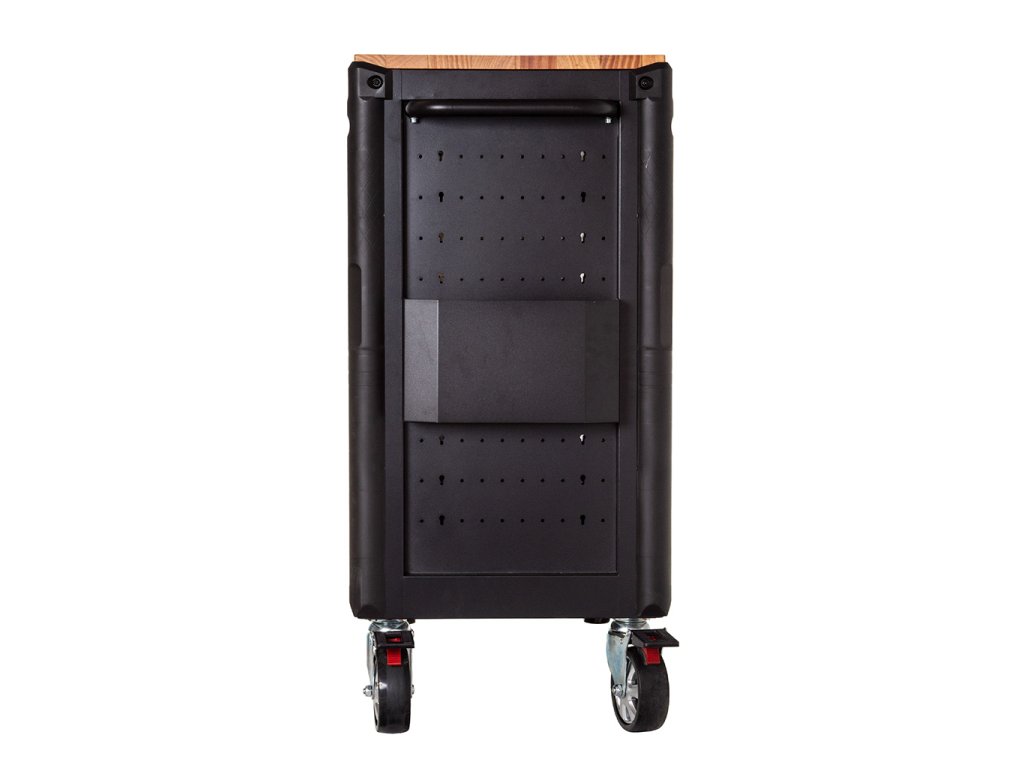 - Veľké ovládateľné kolesá, automatické zaistenie a brzda zaisťujú bezpečnosť pri premiestňovaní skrinky aj na malých svahoch.
