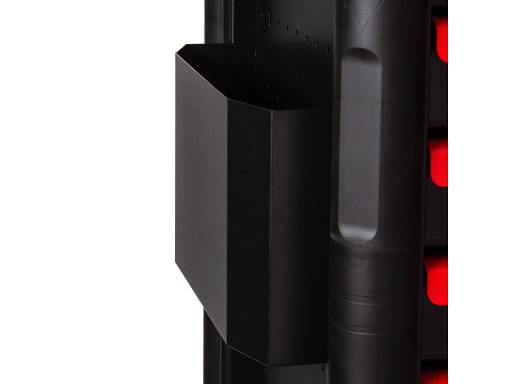 - Bočné steny skrinky sú vyrobené z perforovanej ocele - Môžete nainštalovať ďalšie vešiaky na náradie, držiaky, napr. na uterák alebo čistiace chemikálie