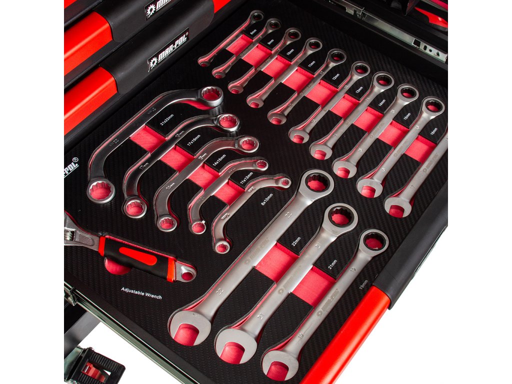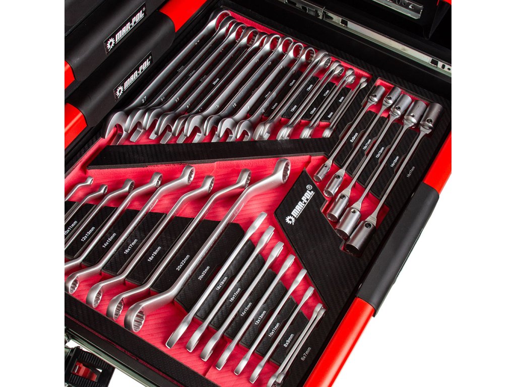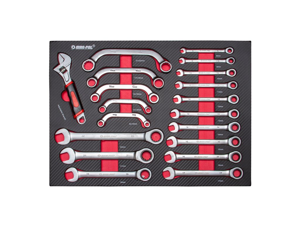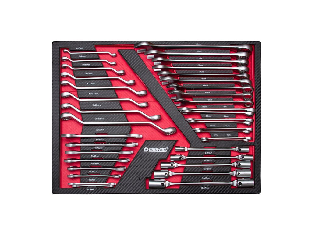 17 ks - vidlicový kľúč: 8, 9, 10, 11, 12, 14. , 15, 16, 17, 18, 19, 20, 21, 22, 24, 27 mm, 8