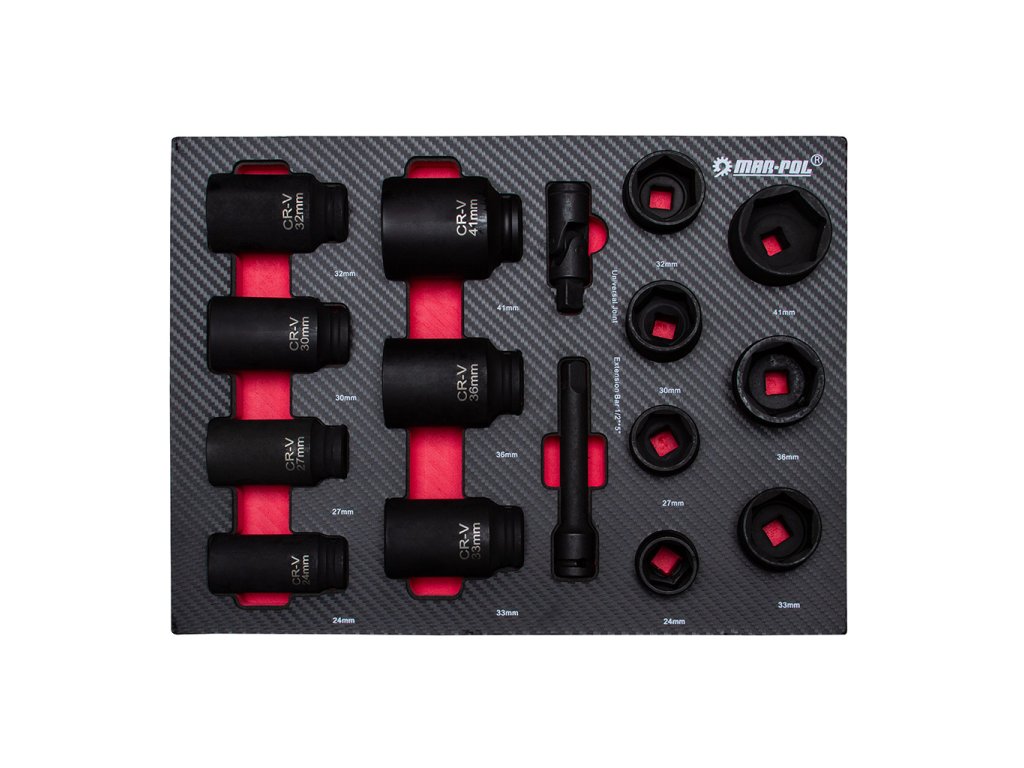 19 ks - 1/2" 6-bodové nástrčky: 8, 9, 10, 11, 12, 13, 14, 15, 16, 17, 18 , 19, 20. , 21, 22, 24, 27, 30, 32mm,
