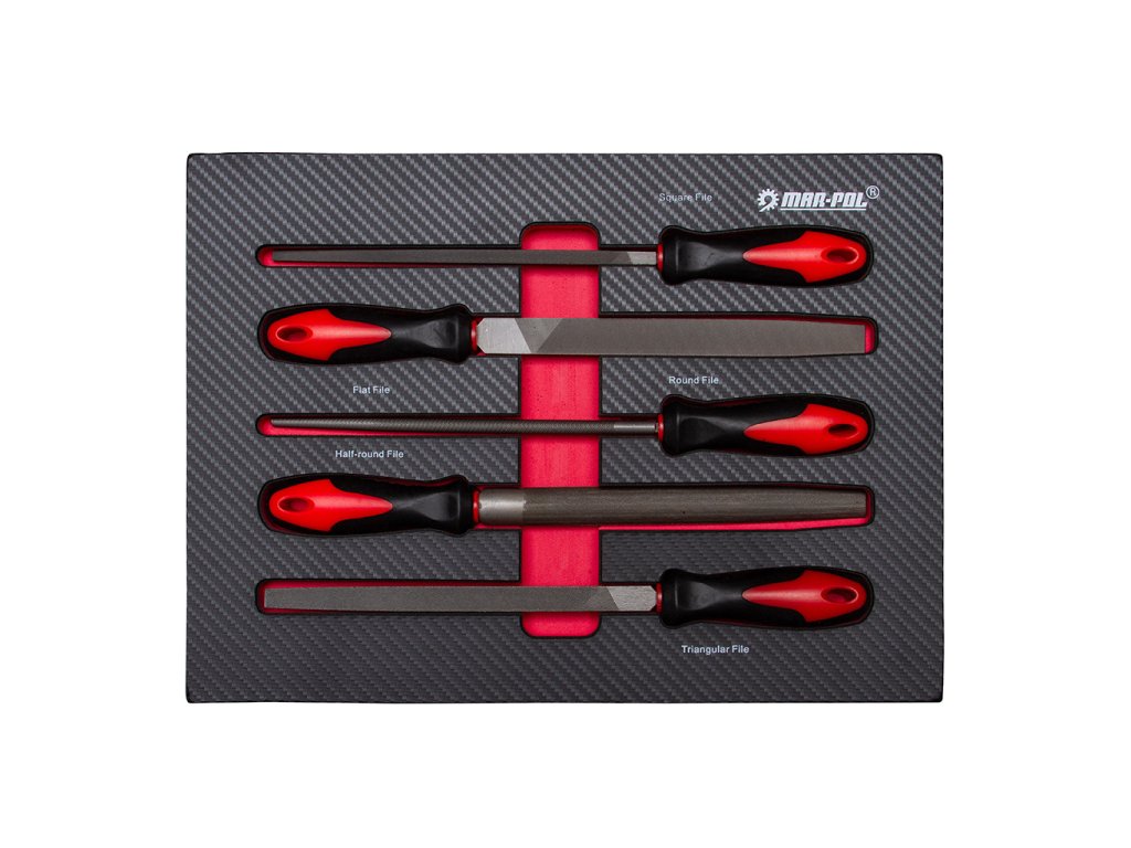 - 5 ks. - 200 mm pilník: štvorcový, plochý, okrúhly, polkruhový, trojuholníkový
