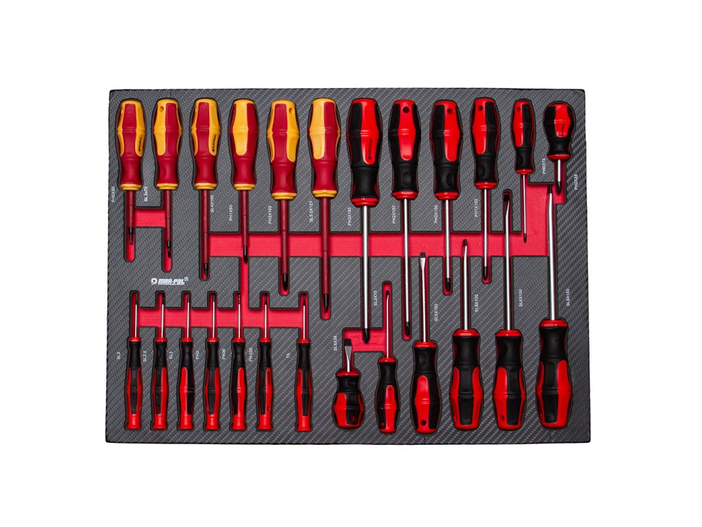 - 6 ks. - izolovaný skrutkovač: plochý: SL2,5x75, SL4x100, SL5,5x125, krížový: PH0x60, PH1x80, PH2x100