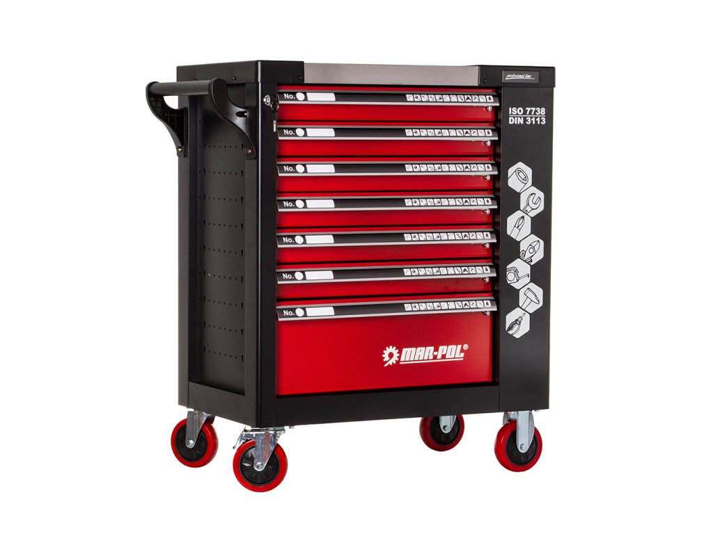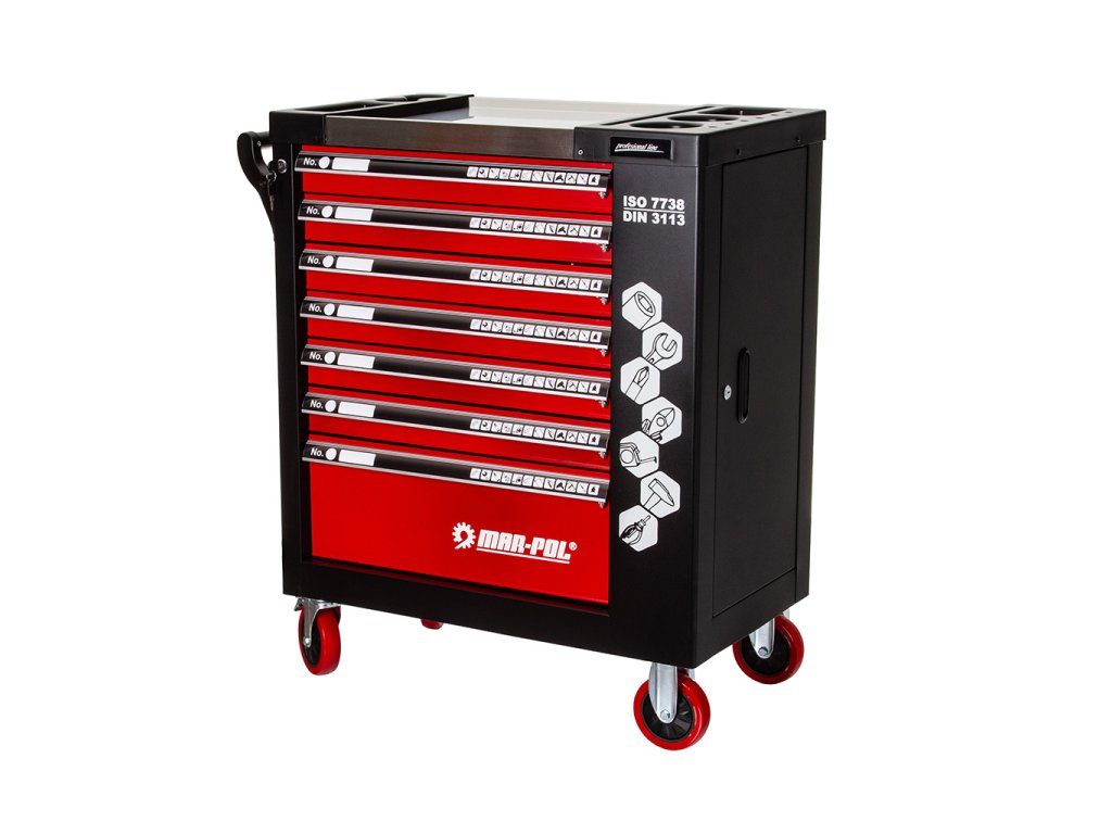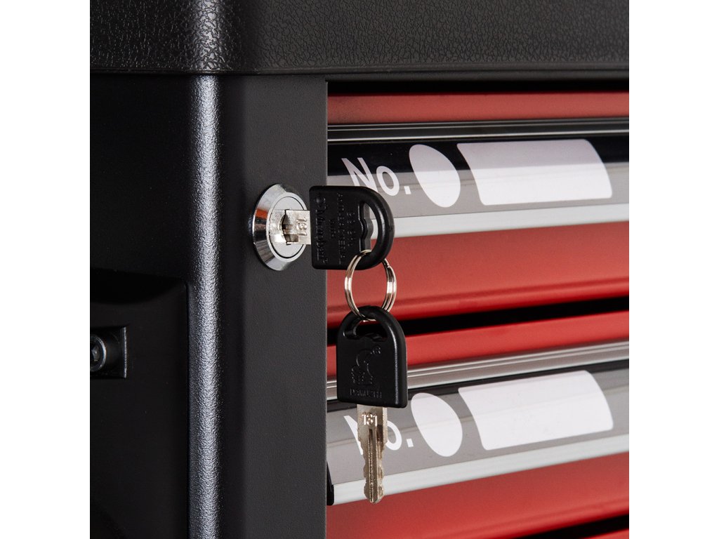 Vozík pomáha udržiavať poriadok na pracovisku a vďaka zámku na kľúč chráni vaše náradie pred krádežou .