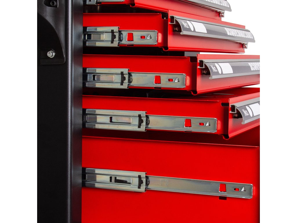 Vozík má dvojité steny , zámky zásuviek a 4 mobilné kolieska , čo uľahčuje prepravu . Rohové nárazníky navyše chránia pred náhodným poškodením , napr. ku karosérii.