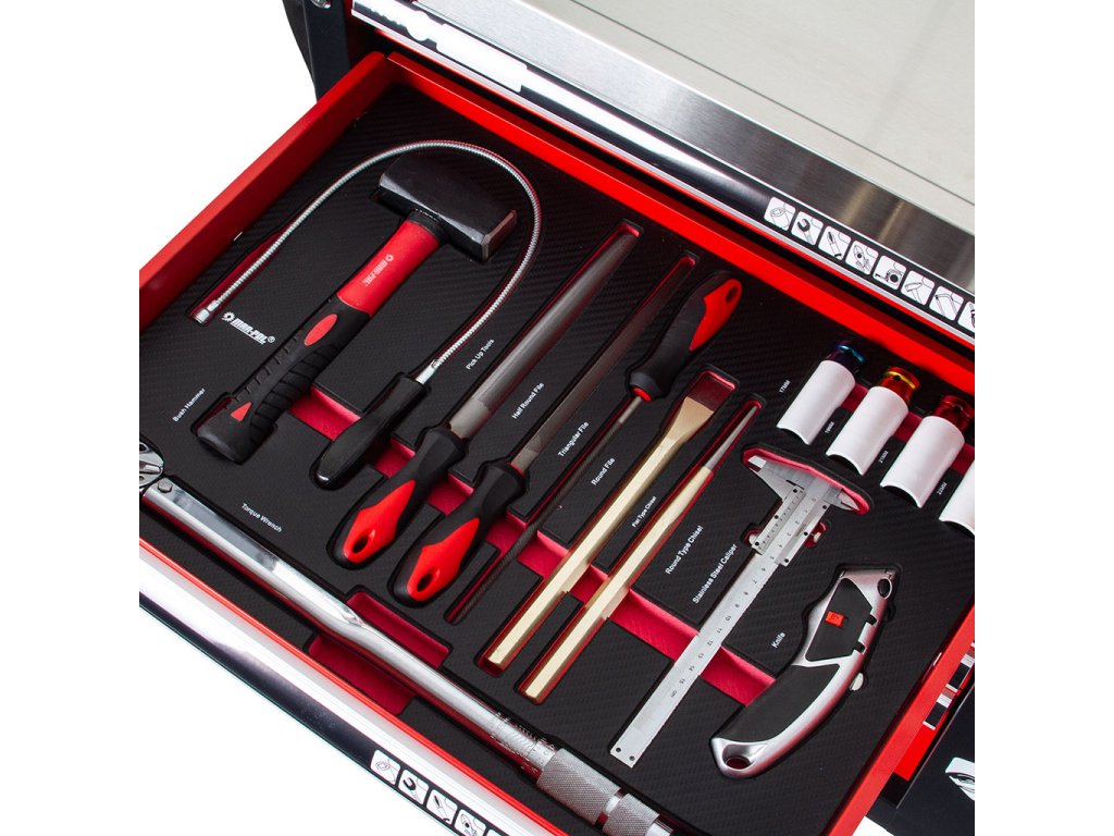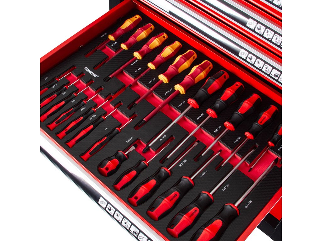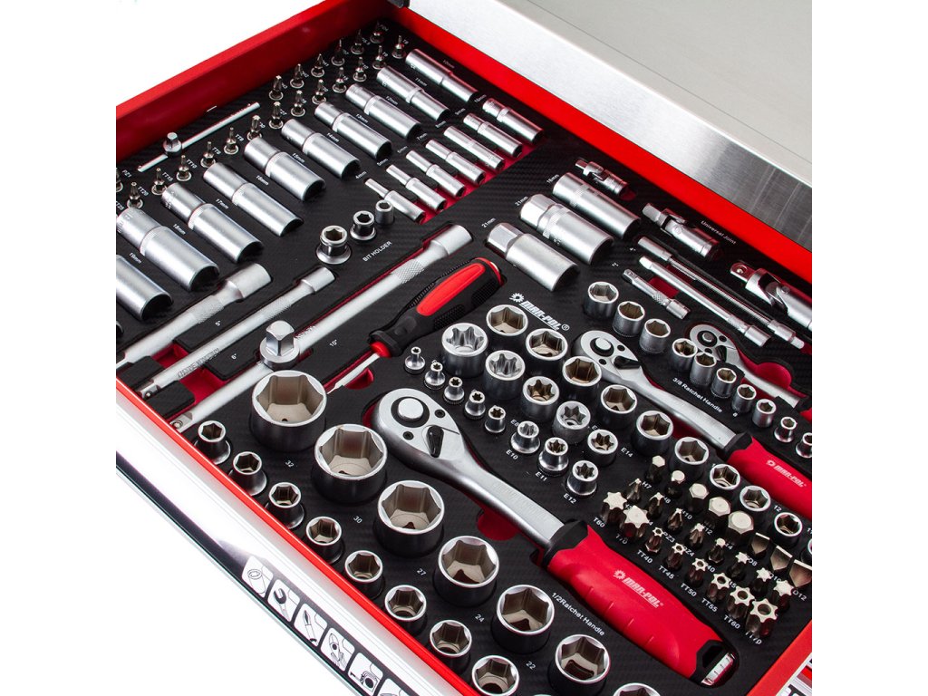 Penové výplne zásuviek, vysoká kvalita náradia, výborný obsah s 263 kusmi náradia!