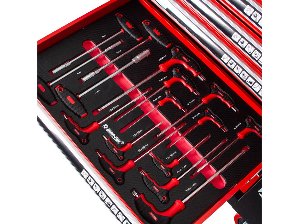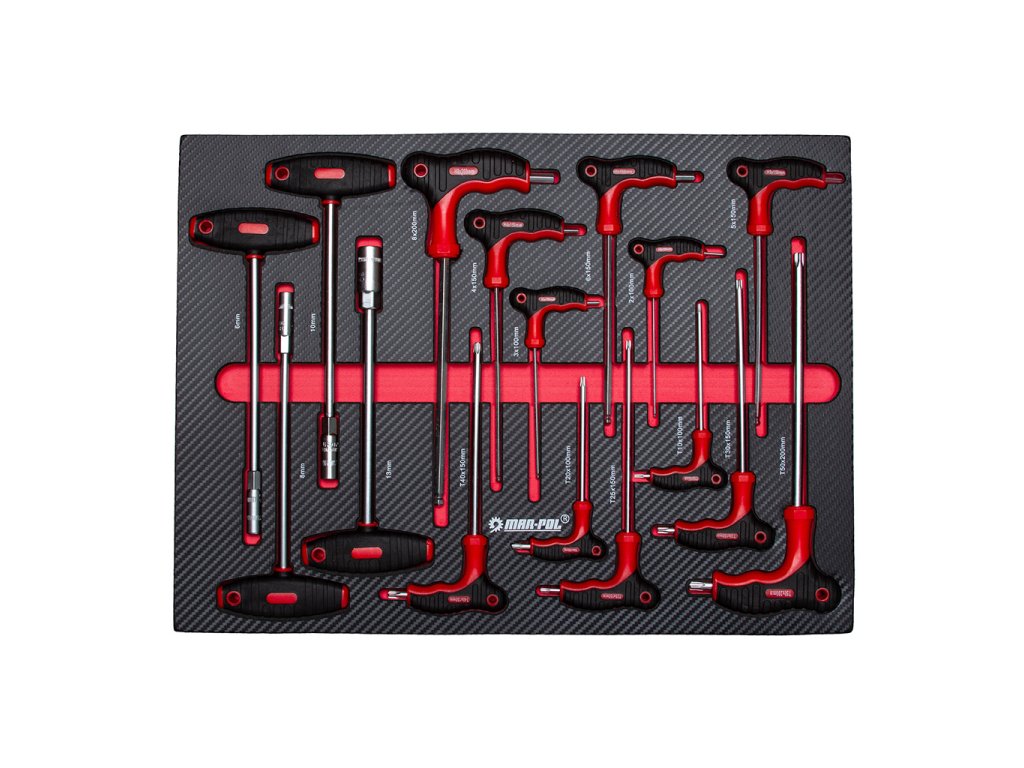4 ks. - Nástrčkový kľúč „T“: 6 mm, 8 mm, 10 mm, 13 mm.