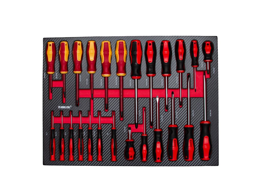Ploché: (SL6x38; SL3x75; SL5x100; SL6x100; SL6x150; SL8x150)- 6 ks. Izolované skrutkovače: