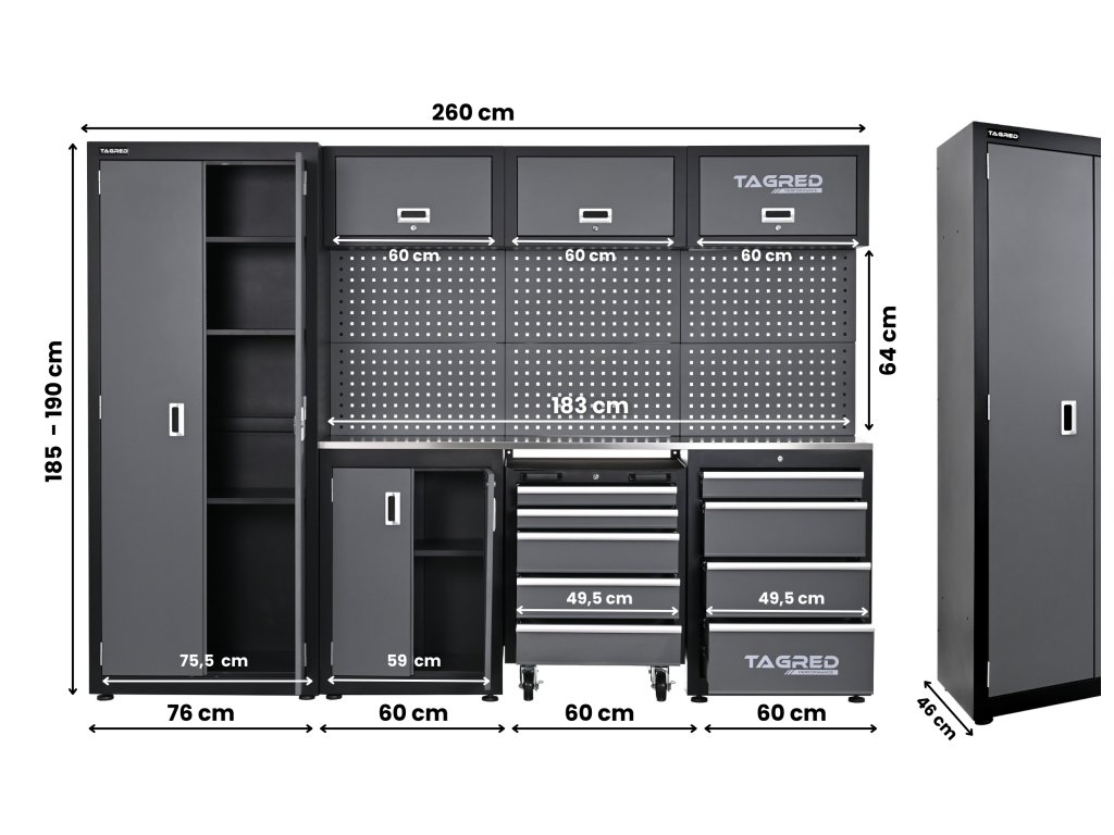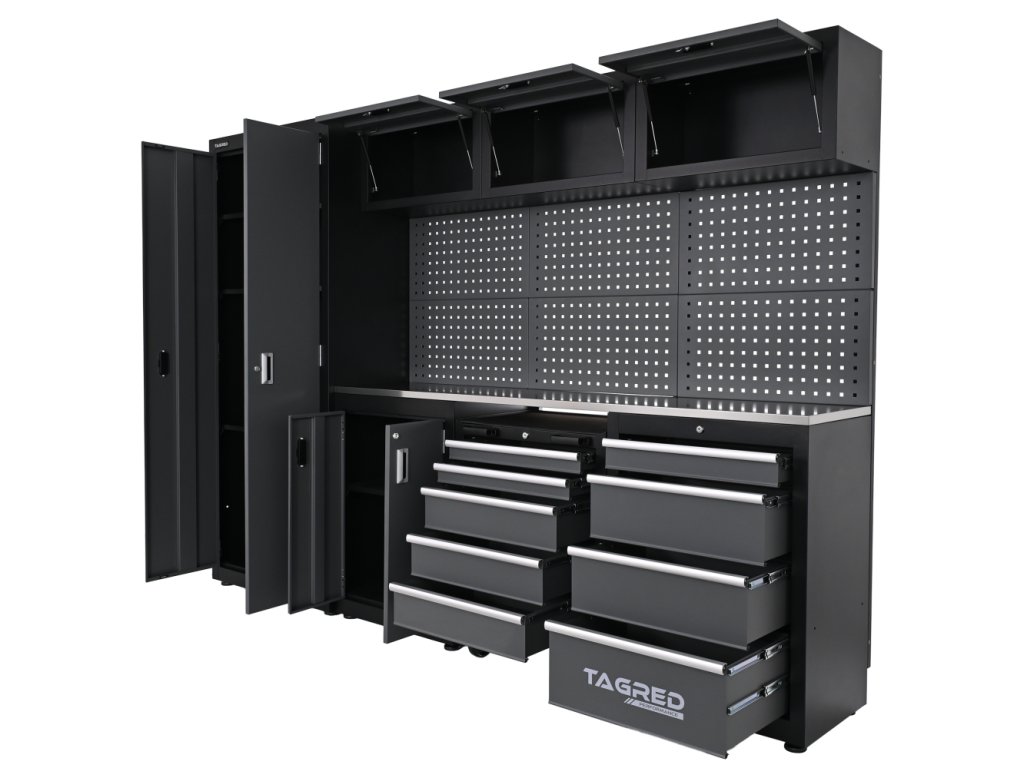 Sada dielenského nábytku navrhnutá s ohľadom na profesionálov a náročných domácich majstrov . Pevná konštrukcia, dostatok priestoru na náradie, funkčnosť a odolnosť – táto sada splní očakávania aj tých najnáročnejších používateľov.