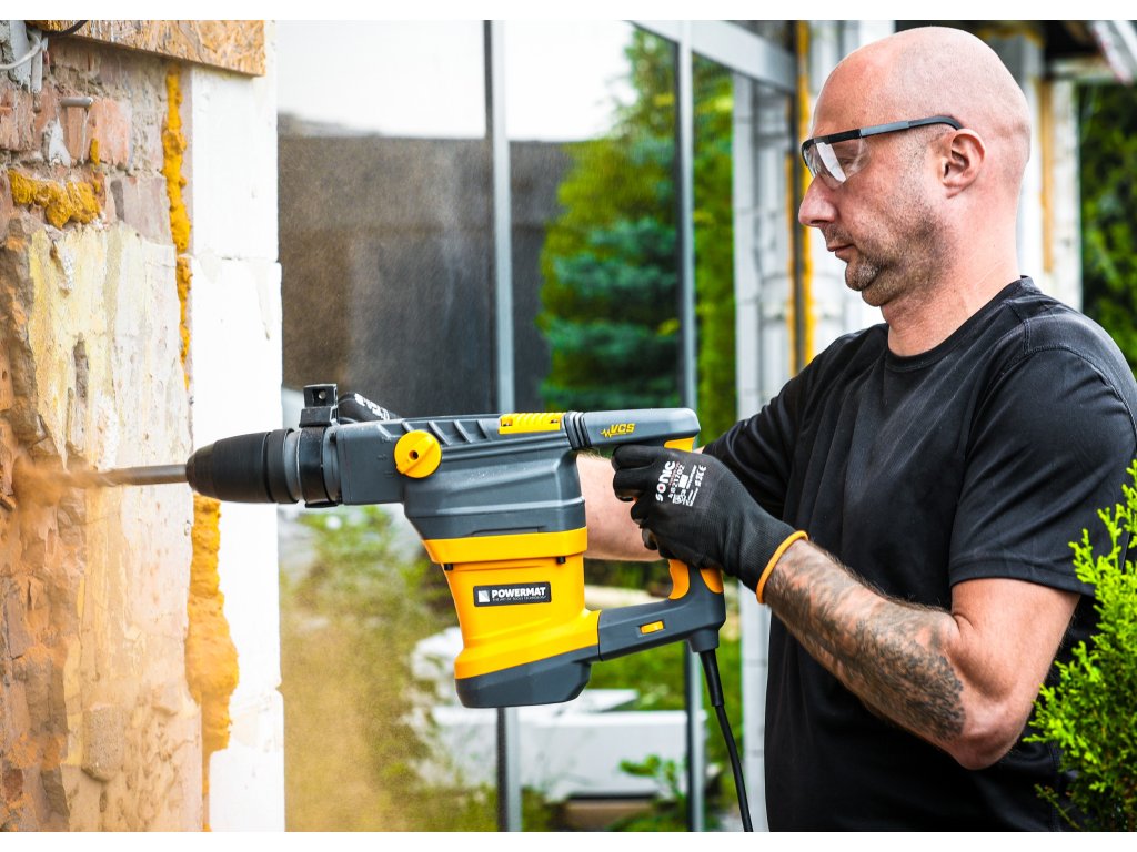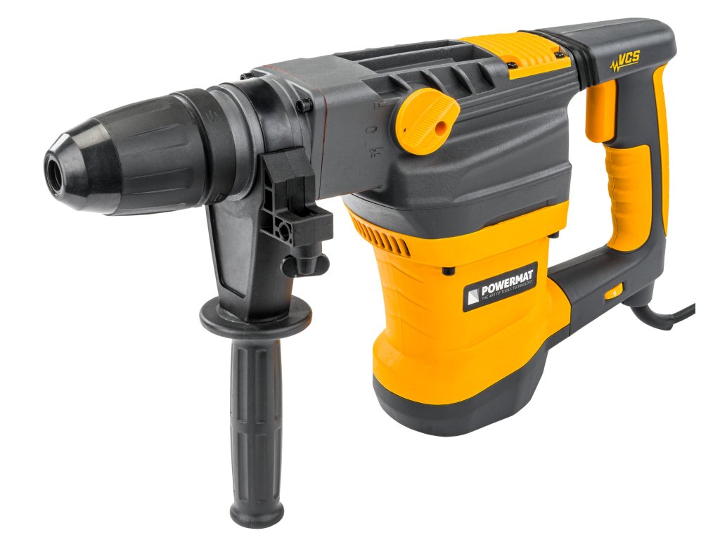 Vŕtacie kladivo POWERMAT s upínacím systémom vrtákov SDS-MAX. Antivibračný systém v rukoväti znižuje vibrácie vznikajúce počas používania.