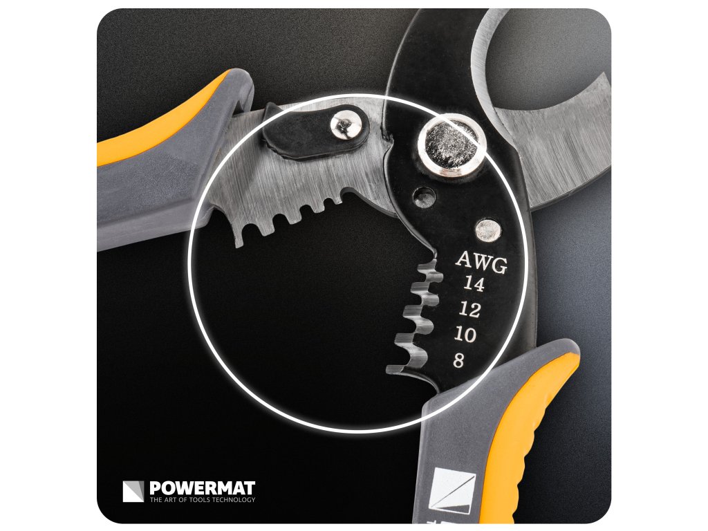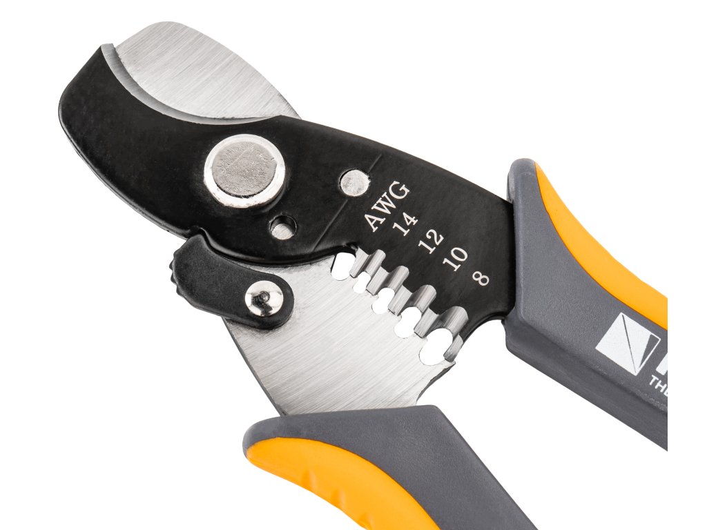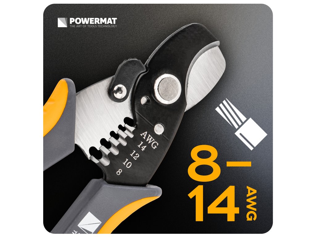 Kliešte umožňujú odizolovanie drôtov v rozsahu 2,1-8,4 mm² (AWG 14-8) a strihanie vodičov do 10,5 mm²