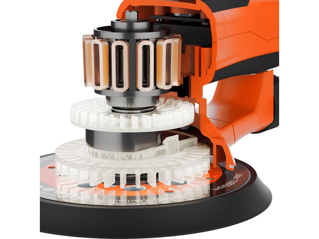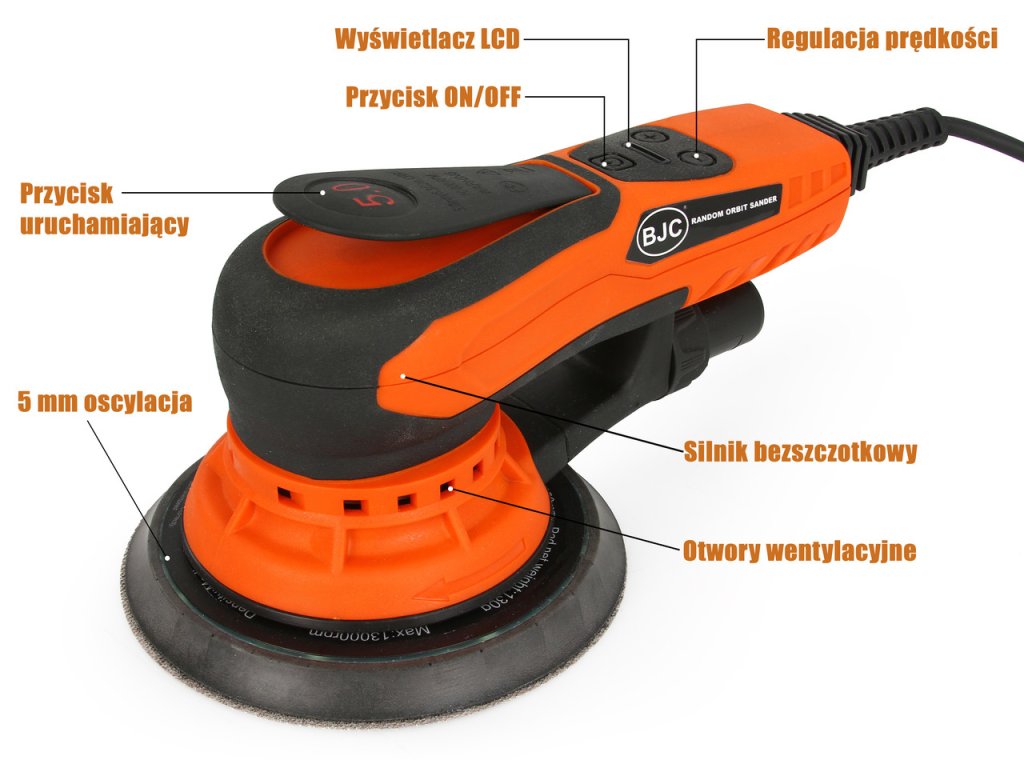 Vďaka použitiu moderných výrobných procesov, optimálnej hmotnosti, pevnej konštrukcii a odolnému bezkefkovému elektromotoru excentrická brúska zaisťuje vysokú spoľahlivosť a dlhú životnosť. Vyznačuje sa uzavretou konštrukciou motora, ktorá eliminuje zrýchlené opotrebovanie alebo poškodenie motora spôsobené prachom vznikajúcim počas prevádzky. Táto excentrická brúska je vybavená kotúčom, ktorý je vďaka univerzálnym sacím otvorom vhodný pre mnoho typov brúsnych kotúčov. Súčasťou sú aj sacie otvory na prach (18 mm) a vetracie otvory. Brúsku je možné pripojiť aj k vysávaču.
