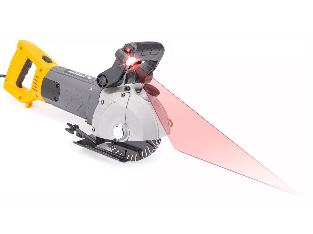 Ponúkaný stenový drážkovač je tiež vybavený laserom na uľahčenie presného rezania a bezpečnostným spínačom PRCD so západkou