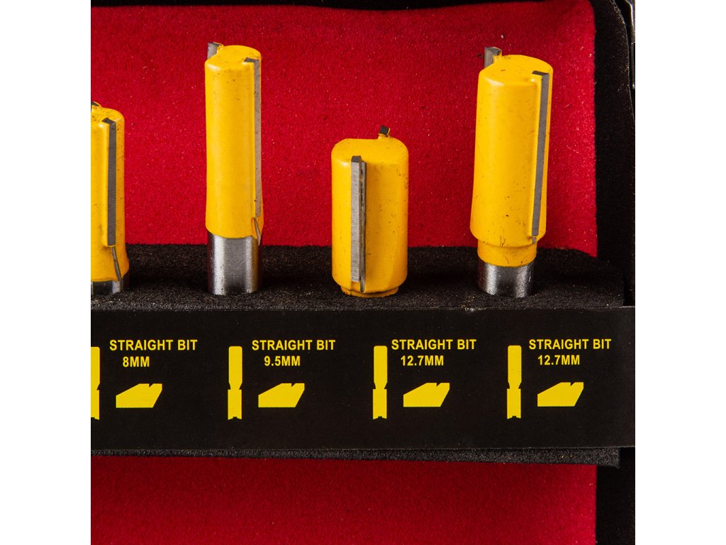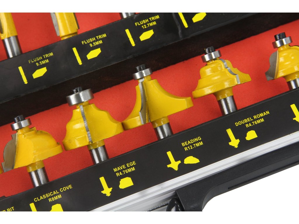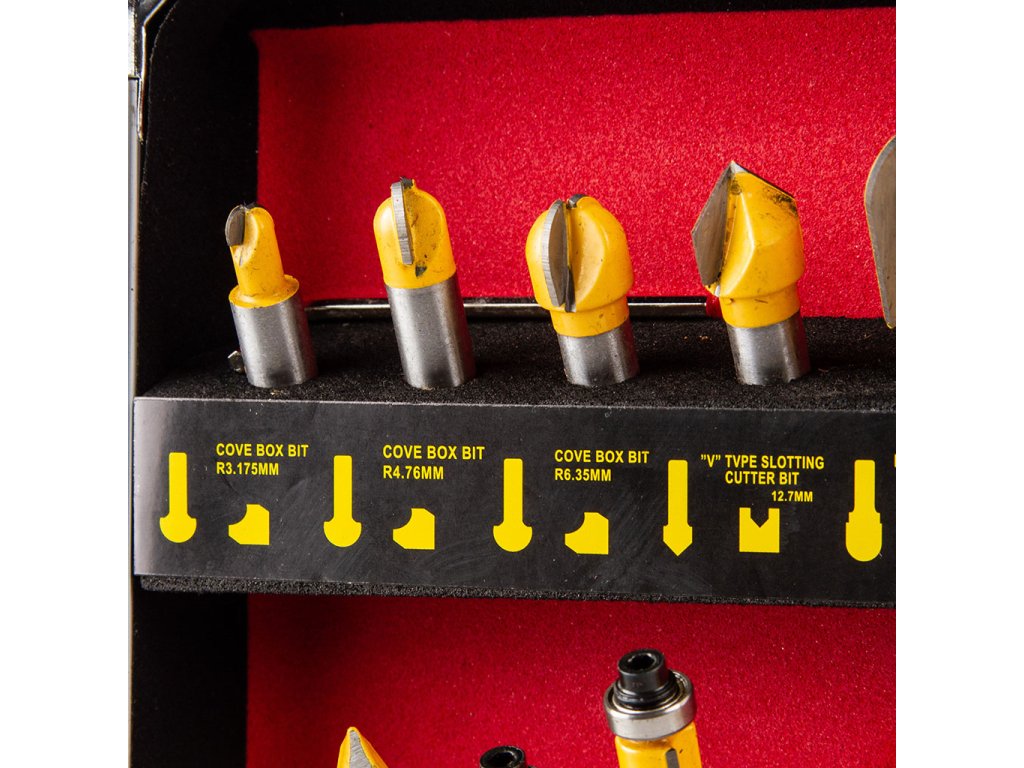 Frézy sú uložené v praktickom kufríku s kovovými klipmi. Prehľadne uložené a nevypadávajú ani pri prevrátení.