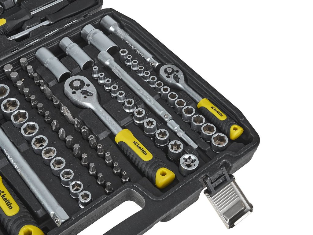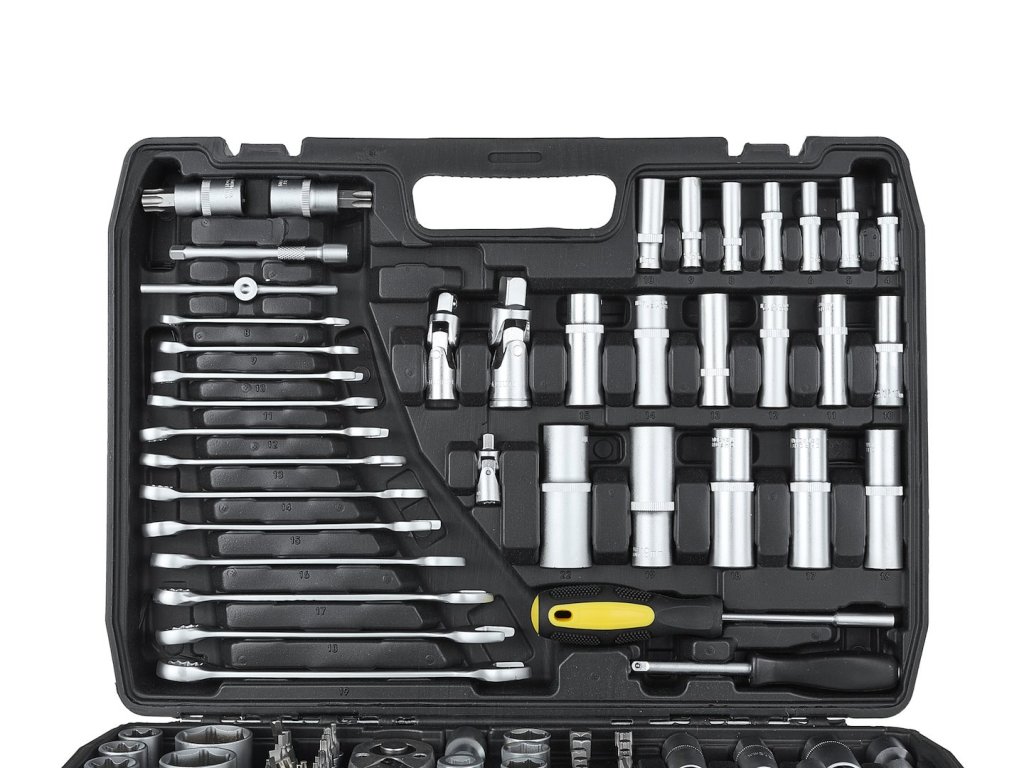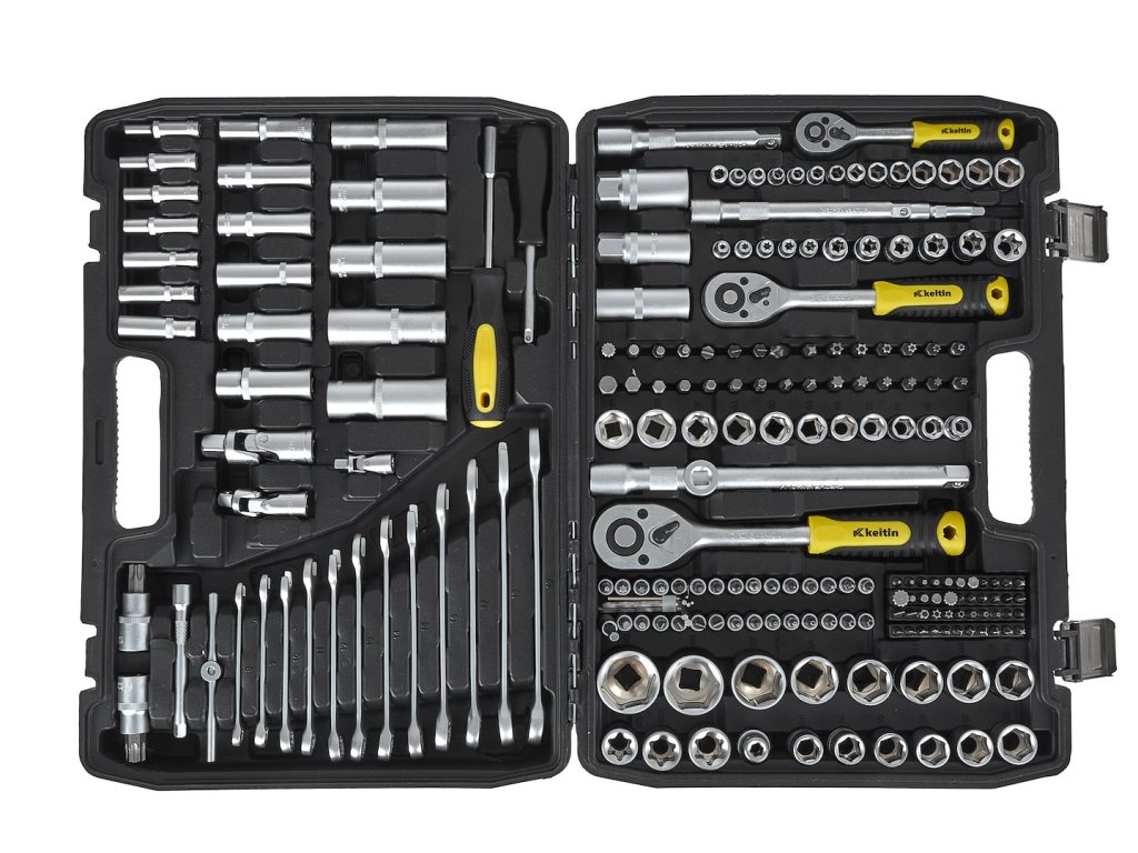 Veľmi dobre vybavená sada náradia a kľúčov. Nástrčné kľúče sú vyrobené z chróm-vanádiovej ocele CrV.