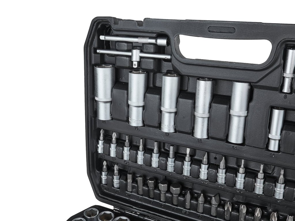 Veľmi dobre vybavená sada náradia a kľučov. Obsahuje nádstavce až do veľkosti 32mm.