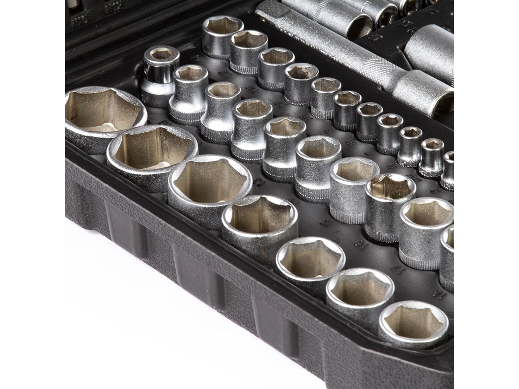 Veľmi dobre vybavená sada náradia a kľučov. Obsahuje nádstavce až do veľkosti 32mm.