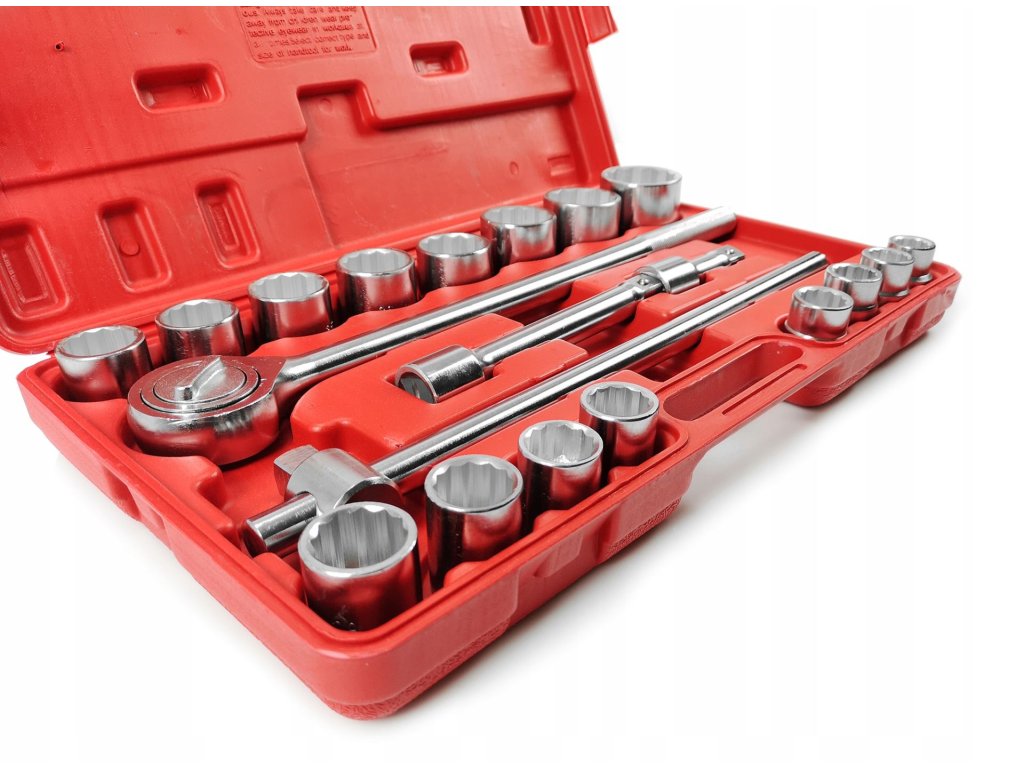 - 16 nástrčných orechov: 19, 21, 22, 23, 24, 26, 27, 30, 32, 34, 36, 38, 41, 46, 48, 50 mm.