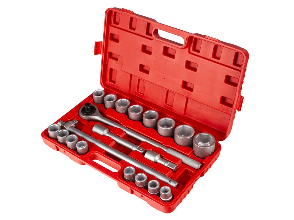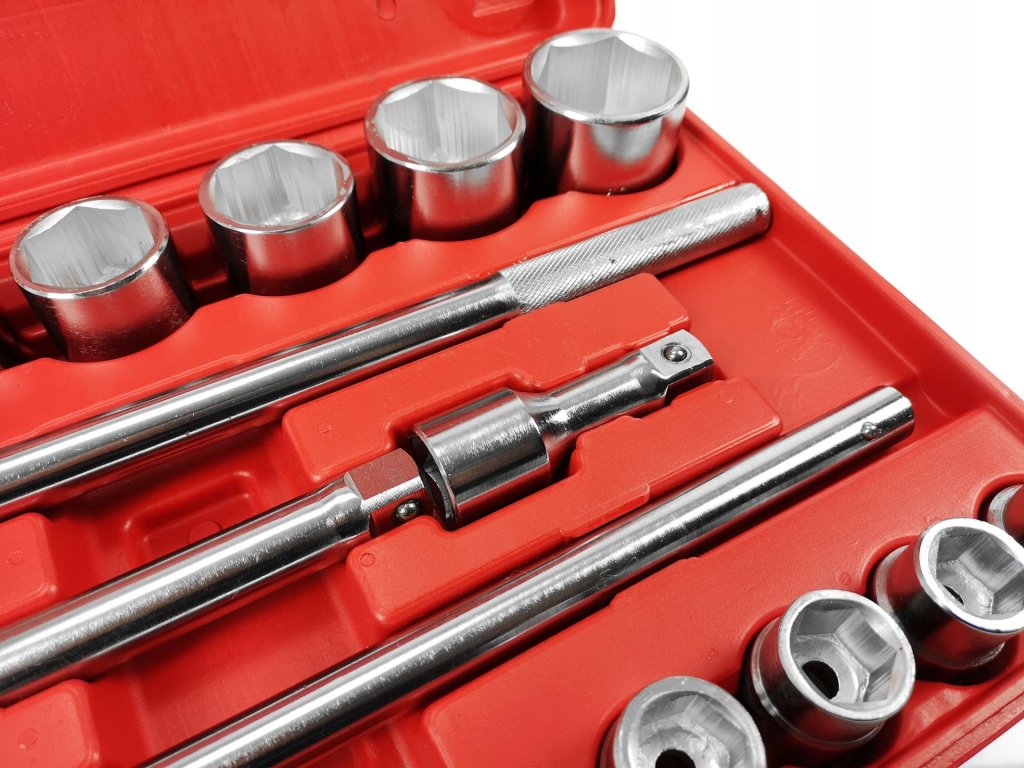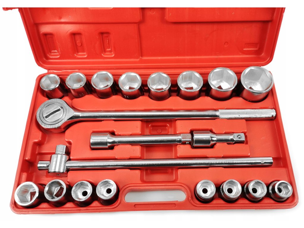 - 16 nástrčných orechov: 19, 21, 22, 23, 24, 26, 27, 30, 32, 34, 36, 38, 41, 46, 48, 50 mm.