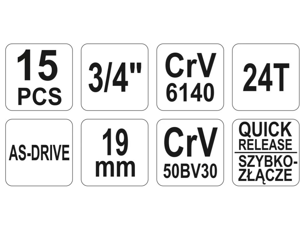 Gola sada 3/4", 15 dielov YATO YT-1334