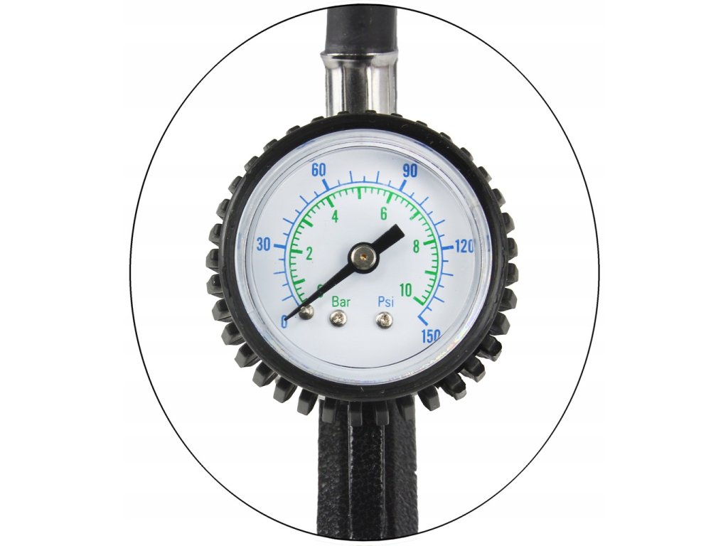 - Pištoľ má funkciu fúkania (spúšť) aj odfúkovania (tlačidlo) - pre presné nahustenie pneumatík.