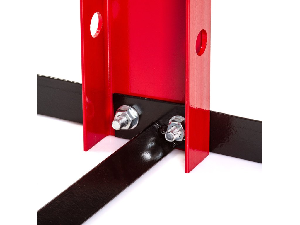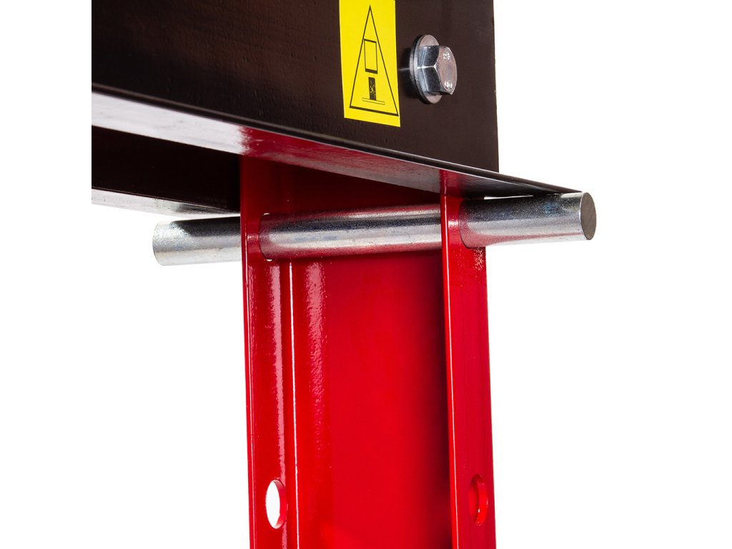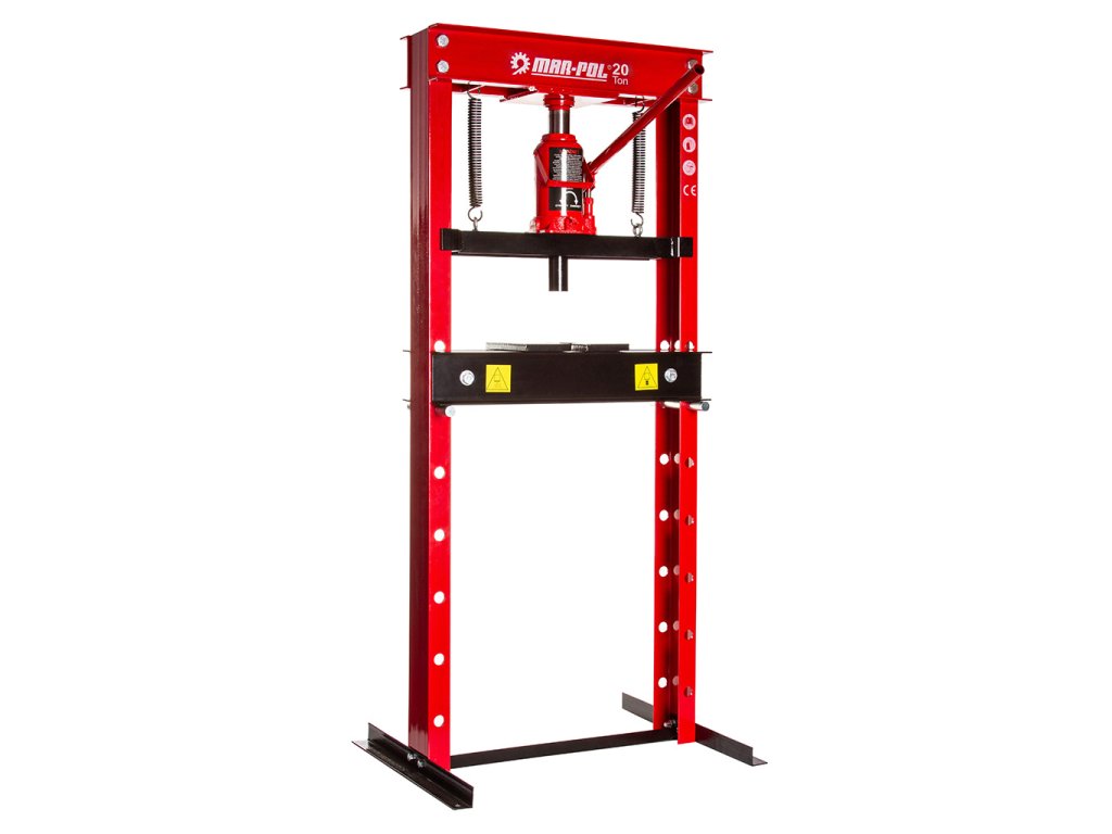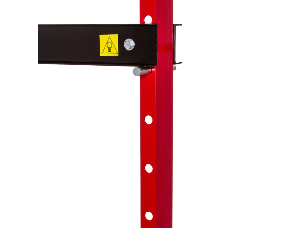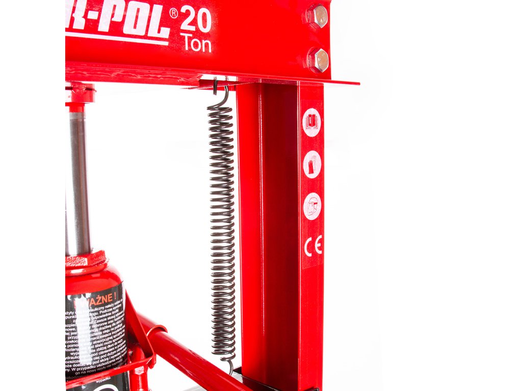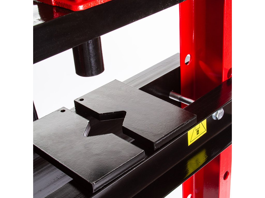 Zariadenie má 8-stupňové nastavenie pracovnej polohy , čo znamená, že sme schopní ľahko a rýchlo zmeniť jeho výšku a prispôsobiť lis aktuálnym úlohám. Správne profilovaná pracovná polica a dve masívne liatinové dosky umožňujú presné vedenie piesta počas prevádzky a správnu podporu lisovaného prvku. Po odskrutkovaní ventilu na valci sa piest automaticky vráti do východiskovej polohy.