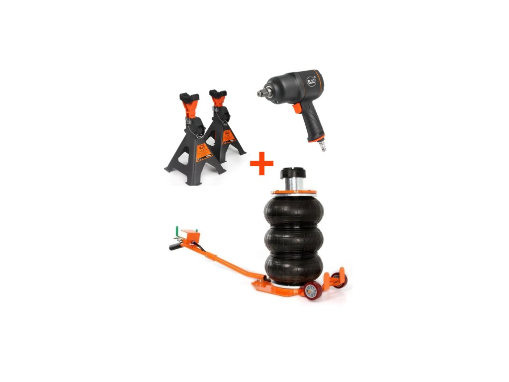 BJC Pneumatický zdvihák 3,5T, rázový uťahovák 1600Nm, podstavce 3T