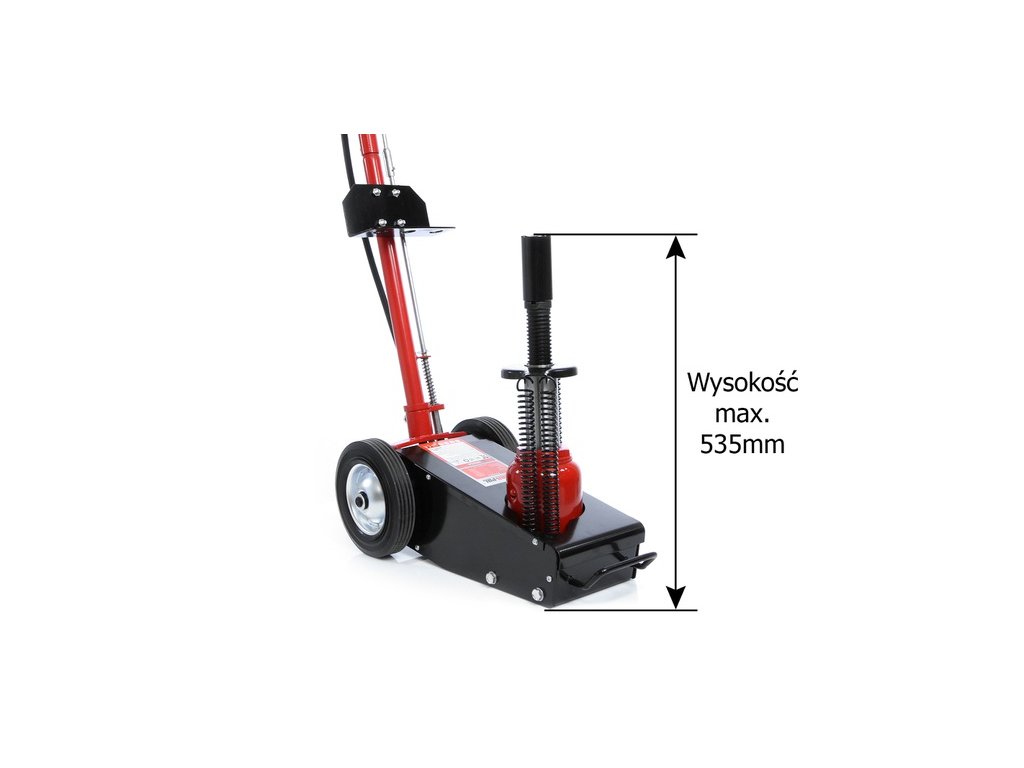 Pneumatický zdvihák s nosnosťou až 22 ton je ideálny pre použitie v autoservisoch a dielňach. Je vybavená kolieskami, čo uľahčuje prepravu na určené miesto. Je určený pre veľké a ťažké vozidlá, napr.